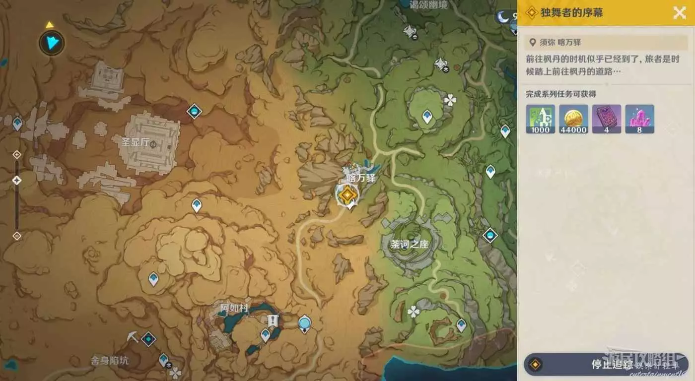 任務開啟後,跟隨目標指引前往須彌喀萬驛觸發劇情。