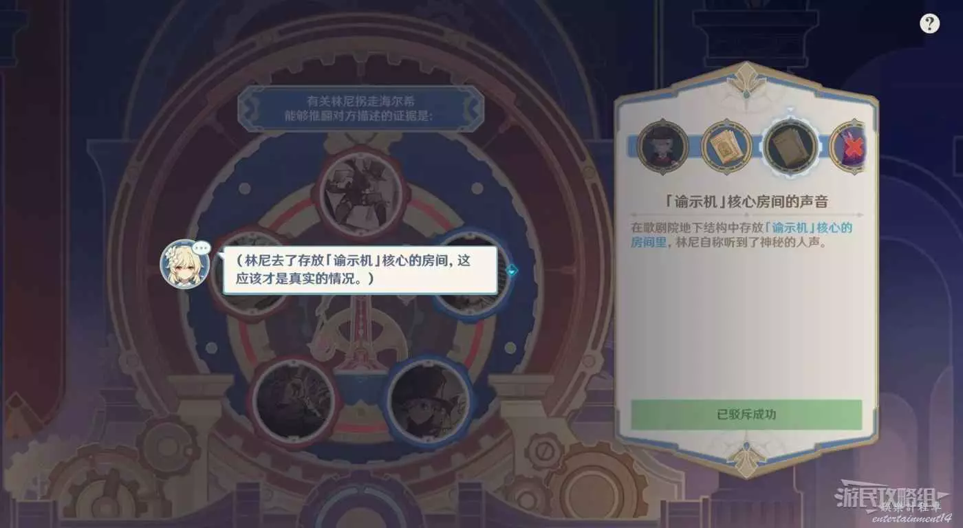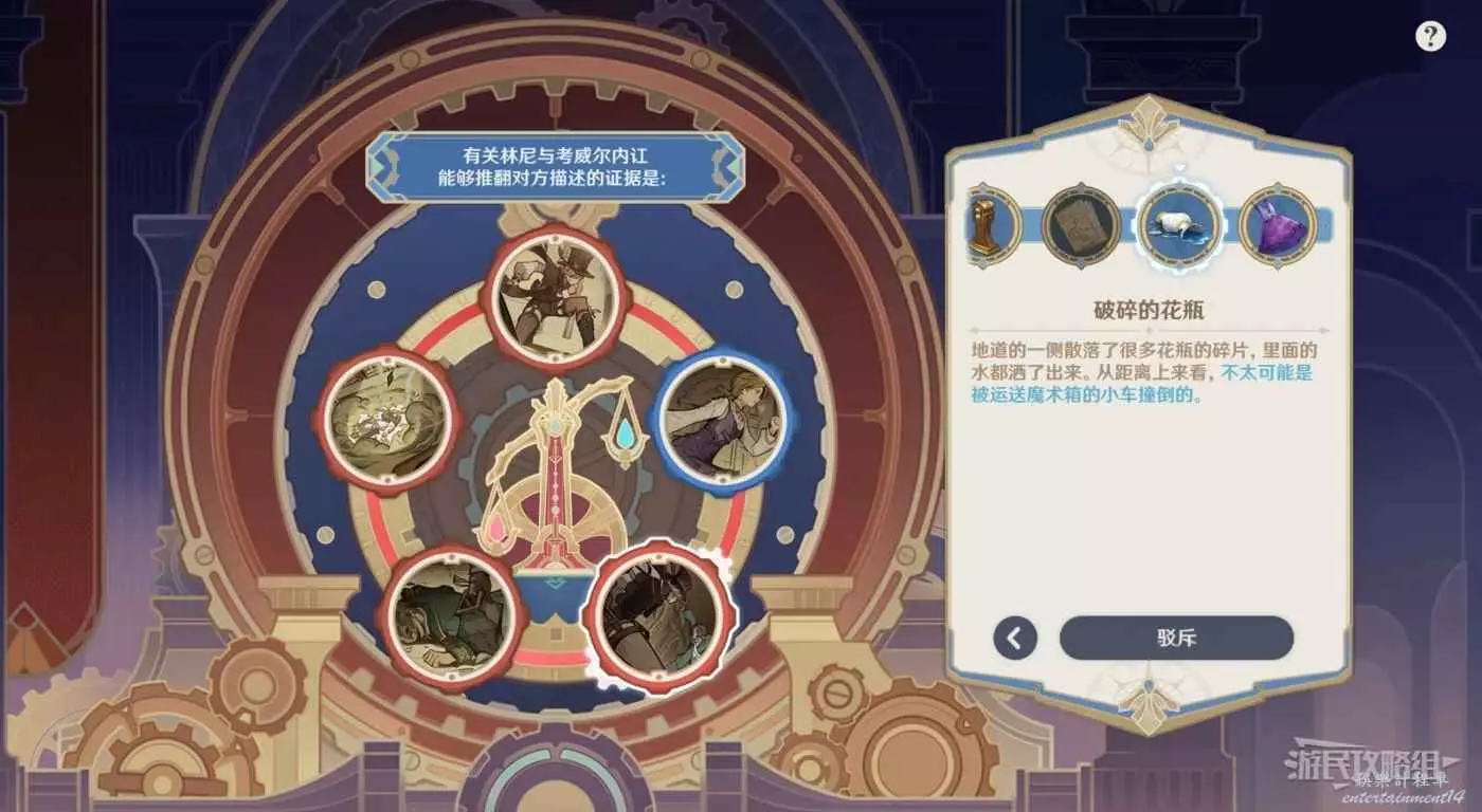 駁斥成功後,繼續劇情。然後選擇線索【魔術表演中的異響】來駁斥水神。