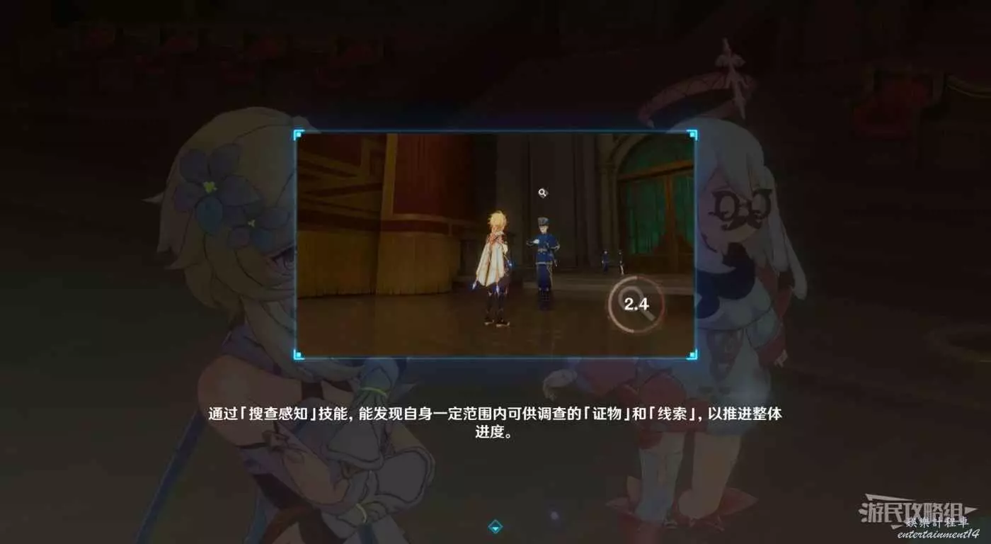 按戰技鍵可以進入調查模式,調查線索。有任務目標指引的為主線劇情要求的三條線索,參考下文。