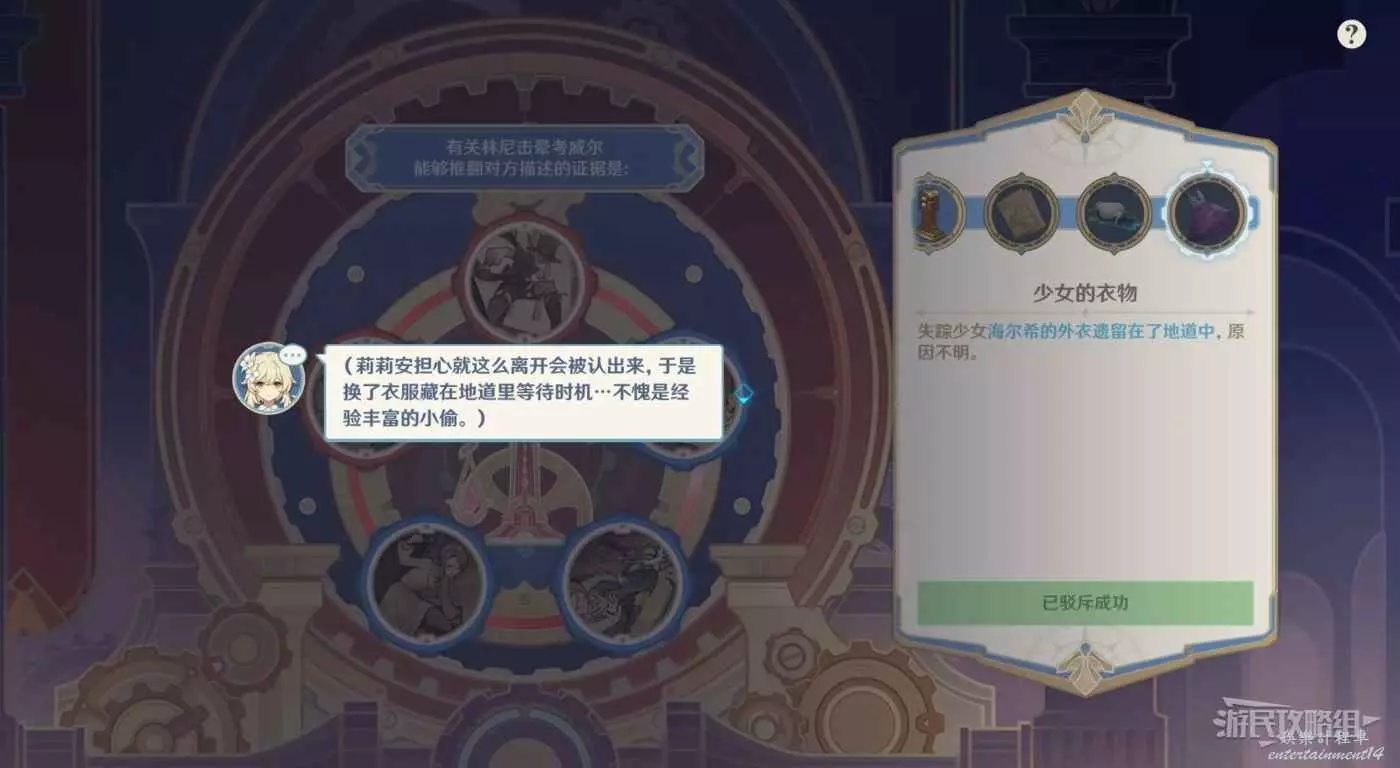 第四個環節【林尼擊暈考威爾】,選擇【少女的衣物】駁斥。