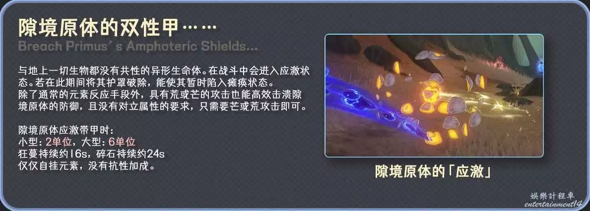 但是呢,隙境原體的這個護甲,它具有芒荒二象性,即受到芒或荒攻擊就會直接破除,無論受擊的芒荒屬性,一次攻擊即可破除隙境原體的護甲使其癱瘓。