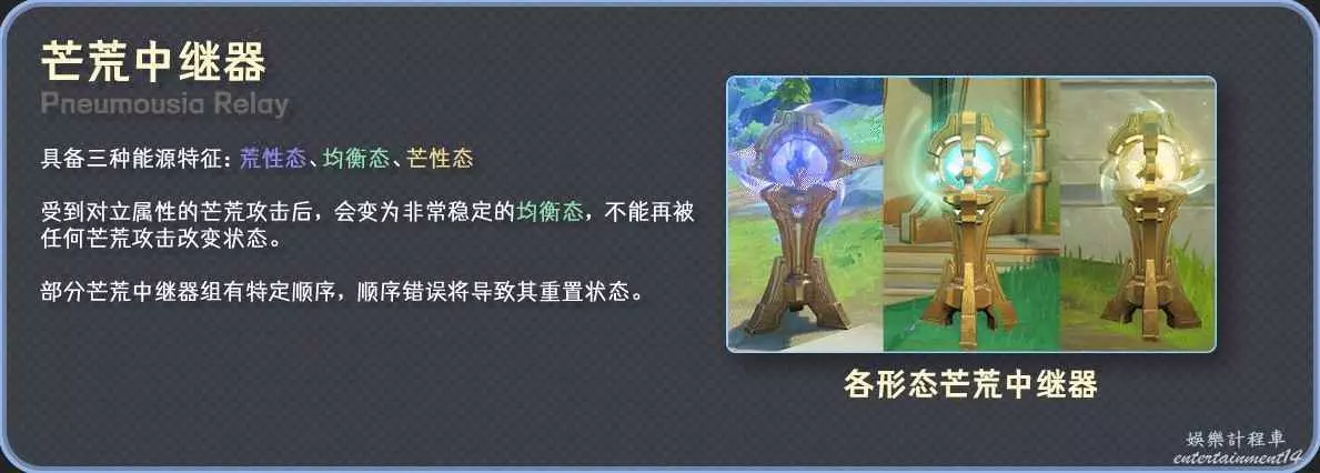 芒荒中繼器(Pneumousia Relay),可以看做是芒荒火把,一部分解密會用到它。芒荒中繼器攜帶1單位芒荒。