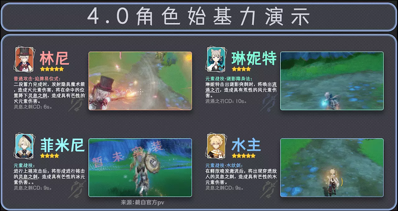 4.0版本中,各個角色的始基力如下