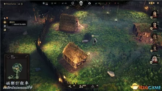 建造完成後,框選另外2-3名工人進入茅草屋,他們將更換蘆葦工人的服裝,開始自動前往河邊收集蘆葦。