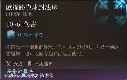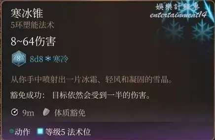 詳解:9級解鎖,體質豁免,冰系輸出法術,距離近且傷害偏低,跟6環冰球加在一起,臥龍鳳雛,制約冰法晉升T0職業的罪魁禍首。