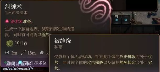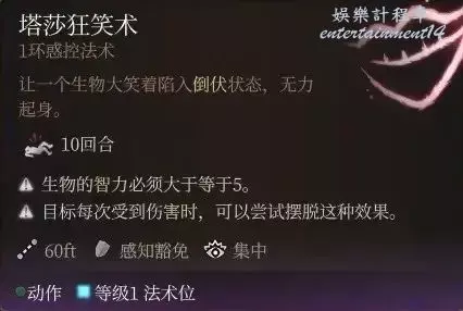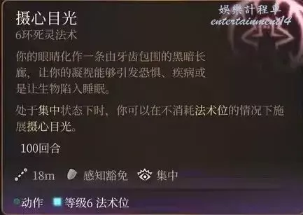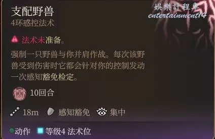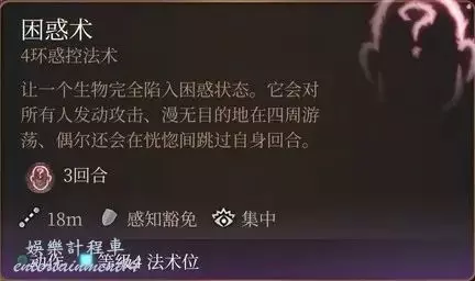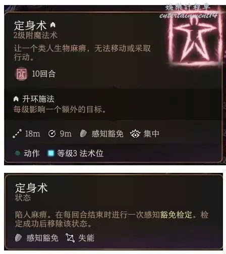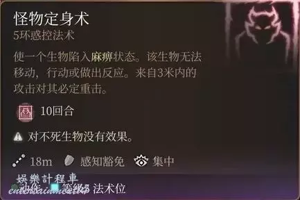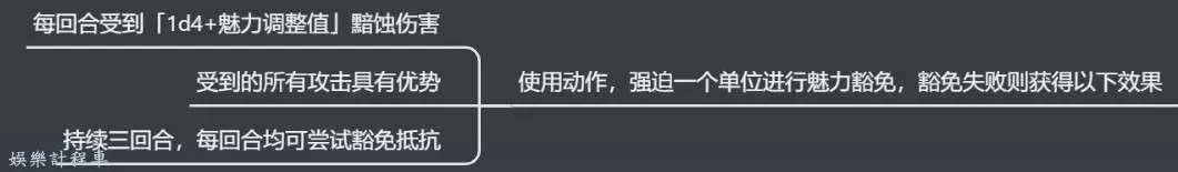詳解:7級解鎖,需要集中,感知豁免,控制法術。控制效果並不強力,可以被2環人類定身術爆殺的法術。其存在讓人困惑。