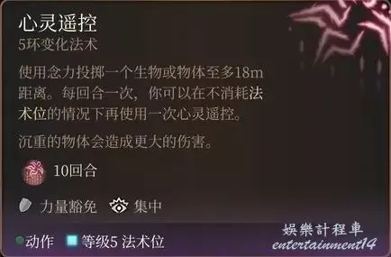 詳解:9級解鎖,需要專注且力量豁免,本身用處不大但已開發現成技術,法師吃力量藥,重箱子塞屍體,遙控箱子砸人經測試傷害可觀。準備複雜影響評級,綜合為S級。