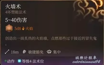 詳解:7級解鎖,需要專注,敏捷豁免,帶傷害的場地法術,1術2用。火術必帶技能,可以上灼燒因此多輪下來輸出並不少。4環之資爆殺5環石牆術的強力法術。