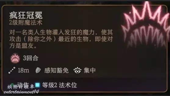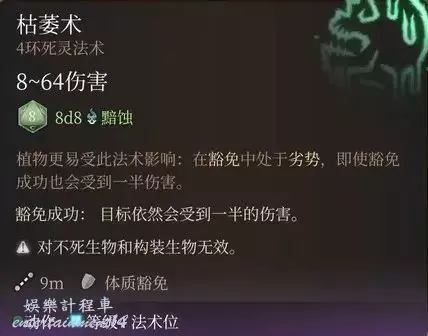 詳解:11級解鎖,需要專注,體質豁免,被必中奧圖迷舞爆殺,高環無用的典型。幾乎無使用價值。