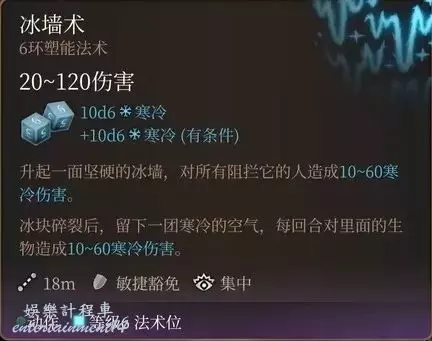 詳解:11級解鎖,體質豁免,被六環冰牆術爆殺,別人輸出是你2倍且有場地效果,請問你呢?高環無用的典型。幾乎無使用價值。