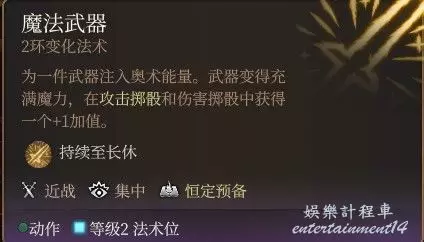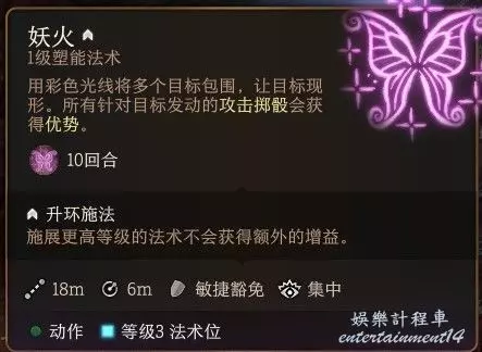 詳解:7級解鎖,需要集中,臨戰前及交互法術,居家旅行必備法術,戰鬥中對於物理輸出作用更大。日常交互(tou)中必備法術。大名鼎鼎,已有多種開發,無需贅述。