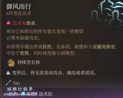 詳解:7級解鎖,需要集中,敏捷豁免,控制/防禦法術,戰場施法防禦不值錢,控制不夠強力。但有開發價值。