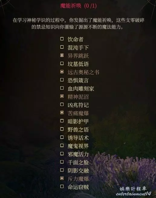 1.逸聞詩人,語出驚人。加強的是輔助命中的能力。目前難度下,遊戲後期的裝備可以提供大量的命中,如物理攻擊武器的附魔,法系法杖等裝備的施法難度等級。因此,前期有用,後期用處其實不大。