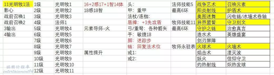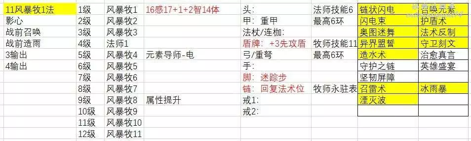 1.方便應用按職業進行劃分,其他職業法表都是由法師法表擴表獲得,因此由法師法表說開去。由高到低。