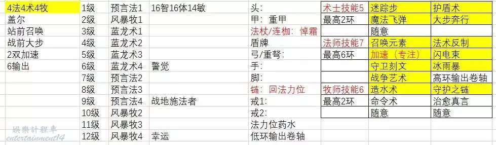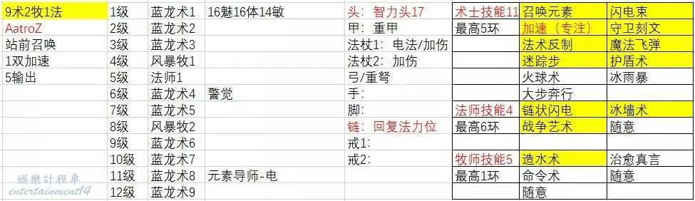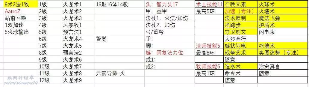 OK,先是法師術士法表,兩者共用1套法表。法師全,術士精。