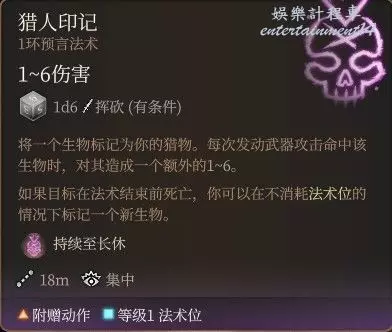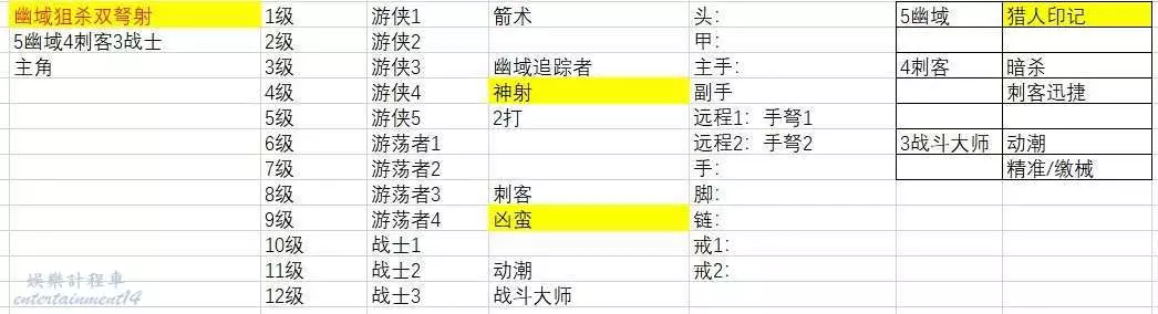 打法:潛行接近,瞄準偷襲,動作用主手攻擊,副手也會同時消耗附贈進行攻擊。都算偷襲,都能重擊(據說)。然後還能全部回復動作和附贈動作,還有先攻加成。進入戰鬥,附贈上獵人印記,然後開射就完事啦。