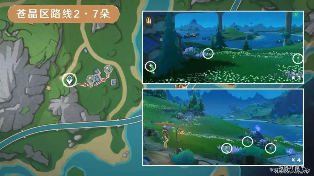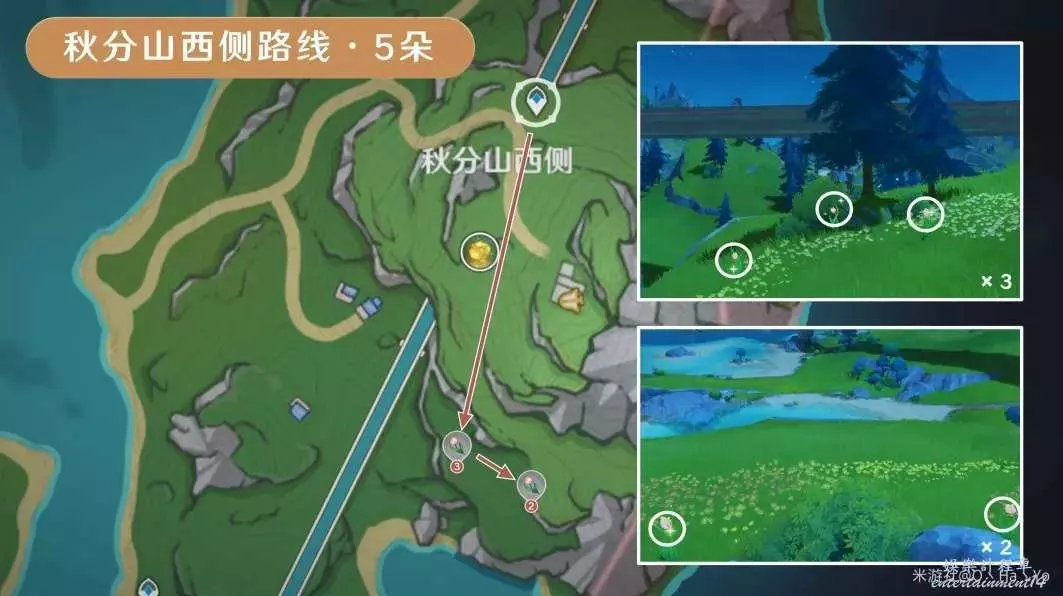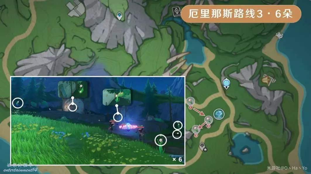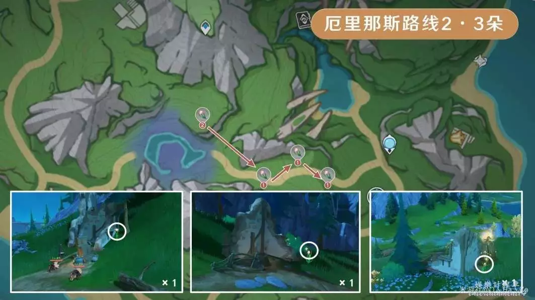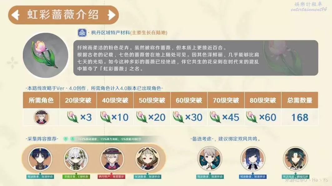 虹彩薔薇分佈比較聚集還是非常好找的。整體路線而言,路途平坦,少攀爬,且都在陸地上,就盡情使用奔跑加速、減少衝刺體力消耗的角色去享受採集吧!一個世界的數量適中,及時需求可去好友世界或者陌生人世界薅一下。