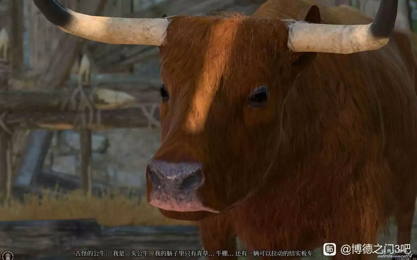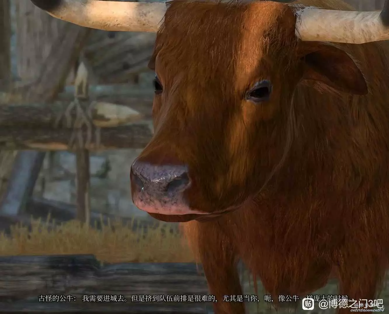 這牛藏挺深的,而且任務在進城之後就消失了,逼得我讀了好久以前的擋才找到了繼續做下去他的任務,這牛為什麼要讚美謊言之神希瑞克呢?難道他這人畜無害的牛樣都是裝的?不過我那麼善良的人肯定要選擇幫他了,讀了好久以前的檔就是專門幫他的。
