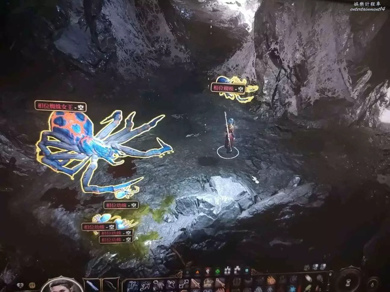 比如打5級的相位蜘蛛女王,它很喜歡踩在蜘蛛網上,如果你直接衝過去,會被蜘蛛網纏住,對射的話硬核難度它在前期也算皮糙肉厚的,還會召喚小蜘蛛幫忙,並不虛低級玩家。但這時候我們直接用火把它落腳的蜘蛛網燒了,它就會掉下高地摔一大截血。