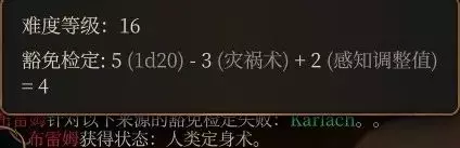如果一個控制類法術(例如大家鍾愛的xx定身術),它針對的是豁免檢定(如圖,該法術為魅力豁免),那麼“克敵先機”和“祝福術”等加成是【沒有用的】。