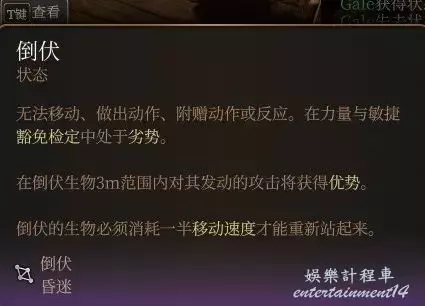 沒有傷害,但檢定不過則倒伏,打斷專注。