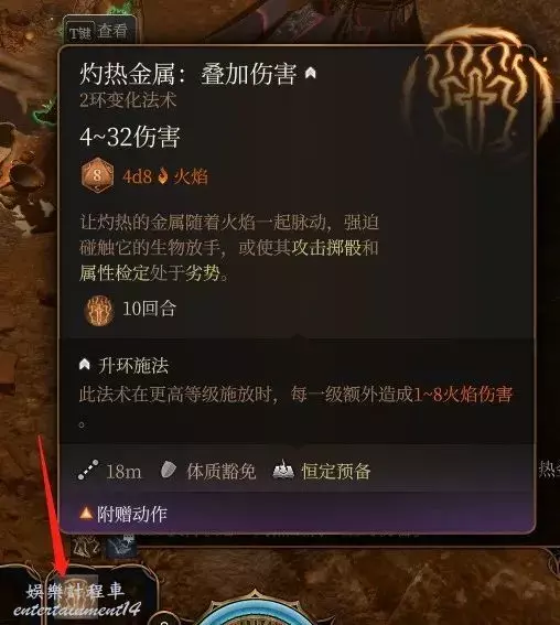 如果成功或者不持有金屬武器但著金屬護甲,則攻擊變成劣勢,並且獲得一個“灼熱金屬”的debuff。