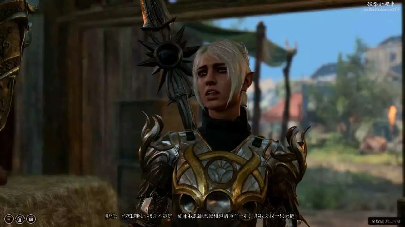 首先好感度要刷到百分之80,有一個對話例如第一次見面吸血鬼絕對不能選,希望你不是只會道歉這句話,吸血鬼會說真遺憾我沒有帶玫瑰花之類的,這個你選了影心不贊同前期就掉好感樂,加好感多的那就是進地精營地還有強迫地精跪舔你的那個劇情加很多,個人對話選擇對莎爾沒意見,前期對話不要強行想了解她,如果好感夠,去德魯伊營地看見狼就可能觸發她害怕狼這個劇情 。如果這個地方沒有觸發後面去養