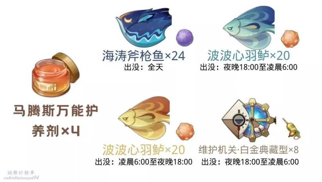 「馬騰斯萬能護養劑」×4兌換材料一覽