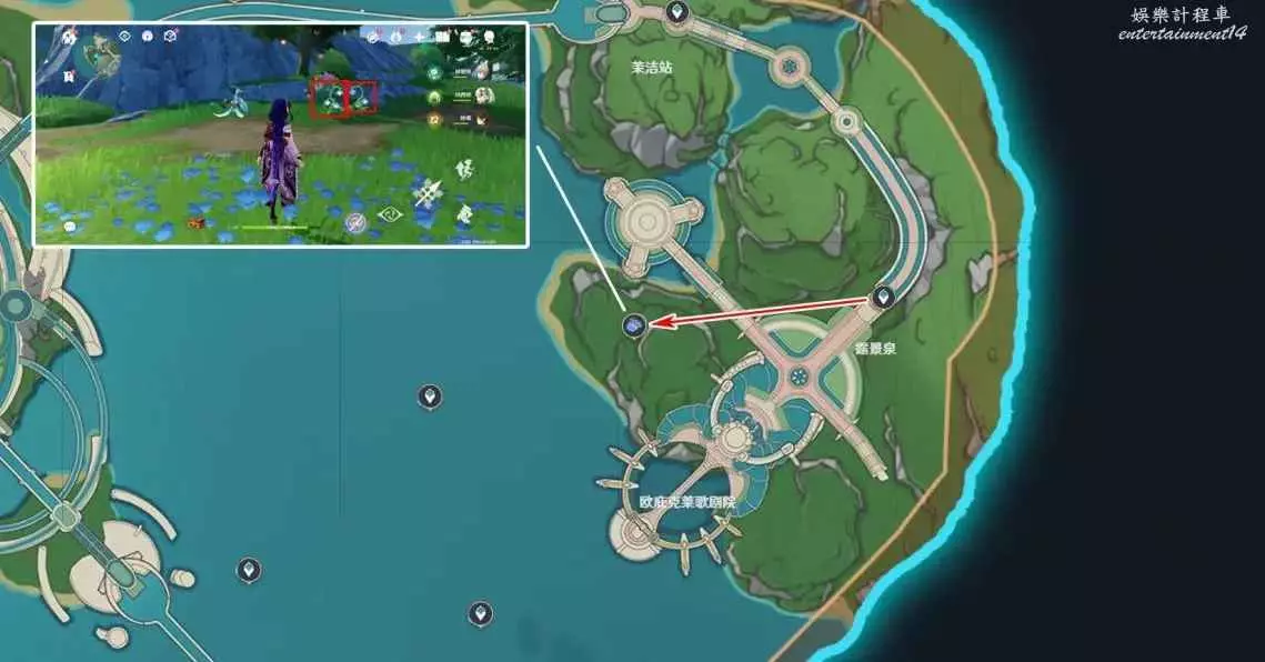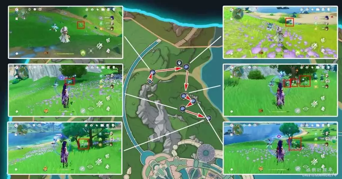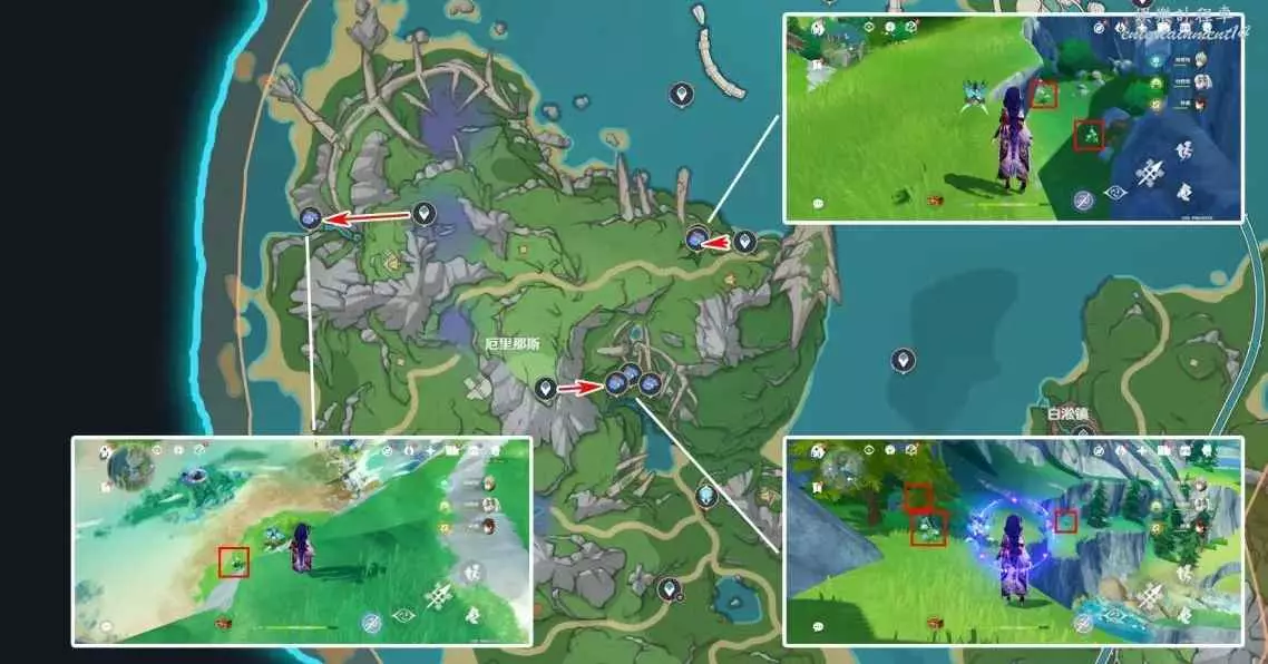 ◆楓丹廷正北方向的副本出發,沿著路線行進即可,所有採集點都在路旁或者樹旁邊。