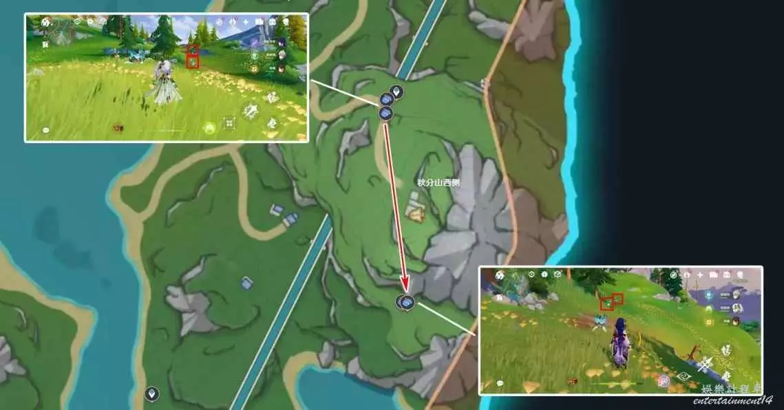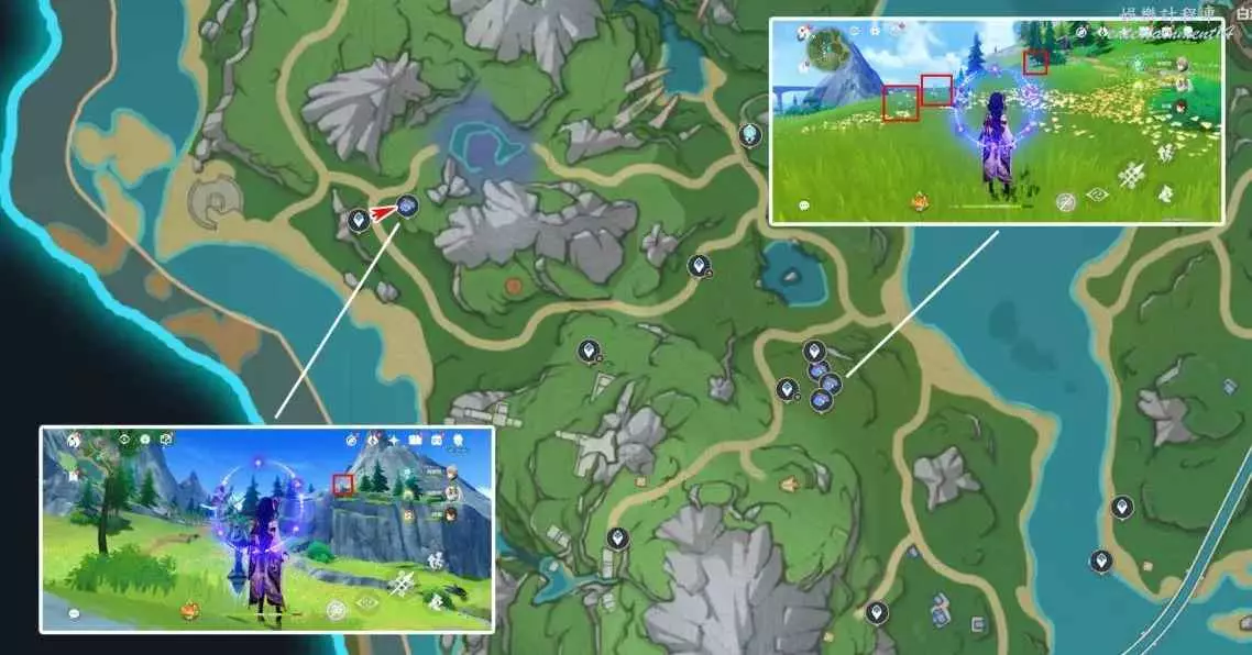◆兩處採集點位置如下。注意左下圖採集點位於小山上,爬上去採集即可。