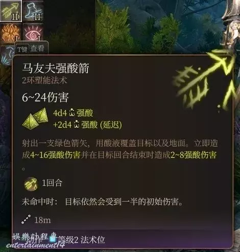 以上兩個直傷法術剛到二環選法術時必學其中之一,我推薦是學強酸箭來輔助近戰大哥輸出,點炸藥啥的說實話伊格尼斯就足夠用的了。