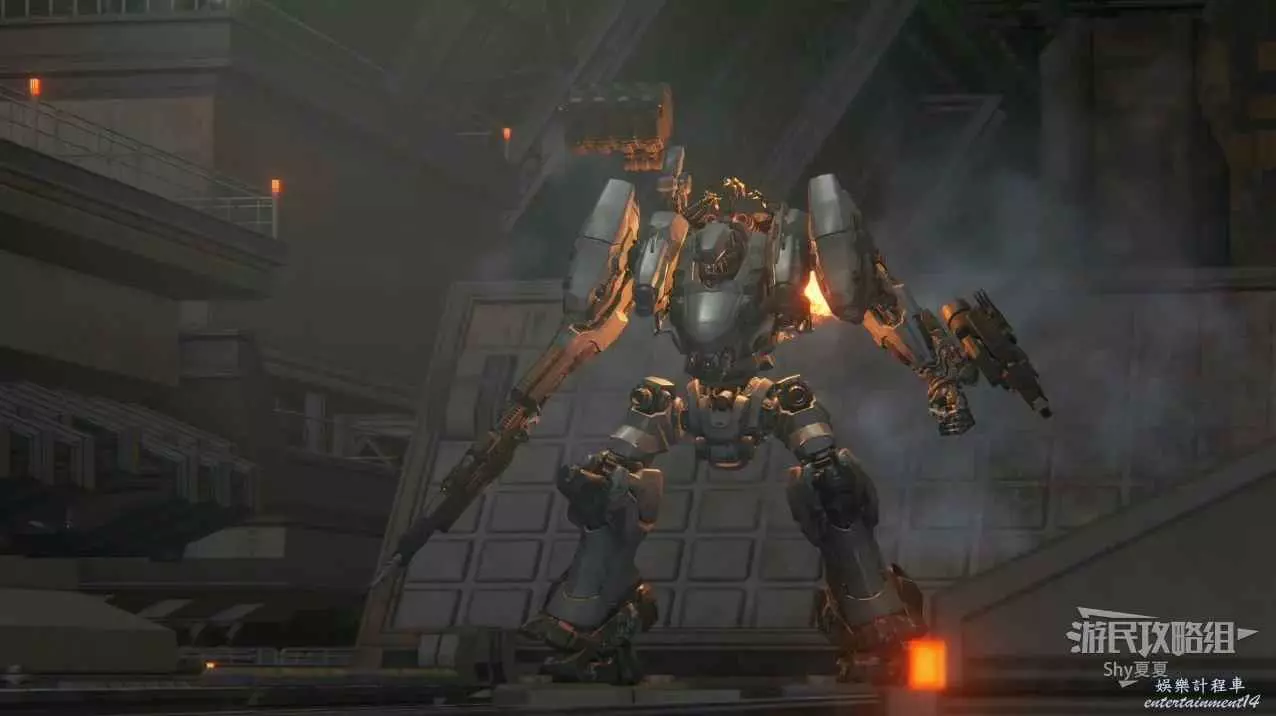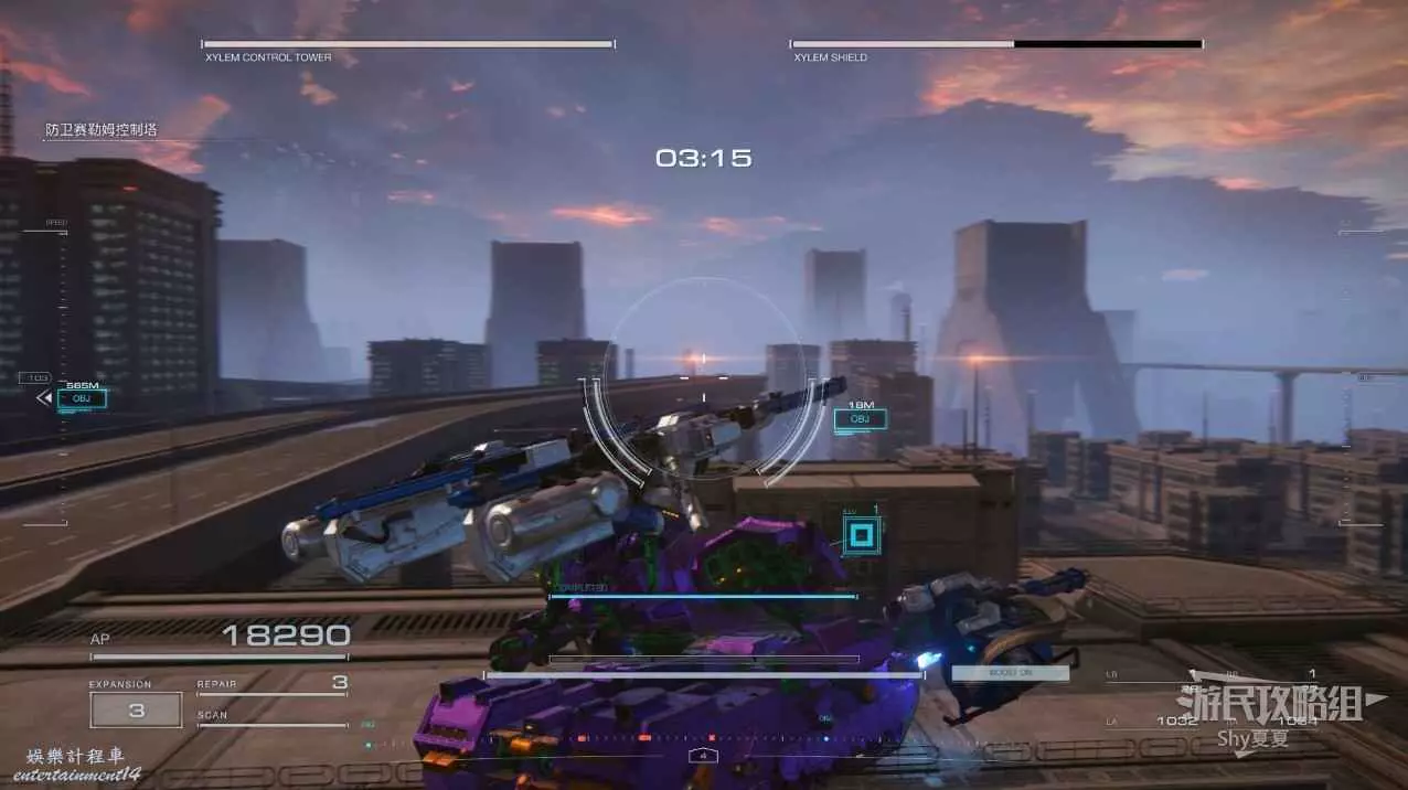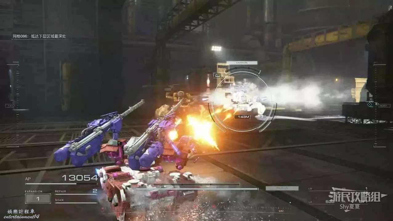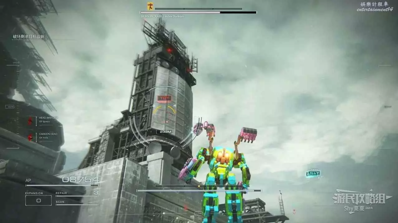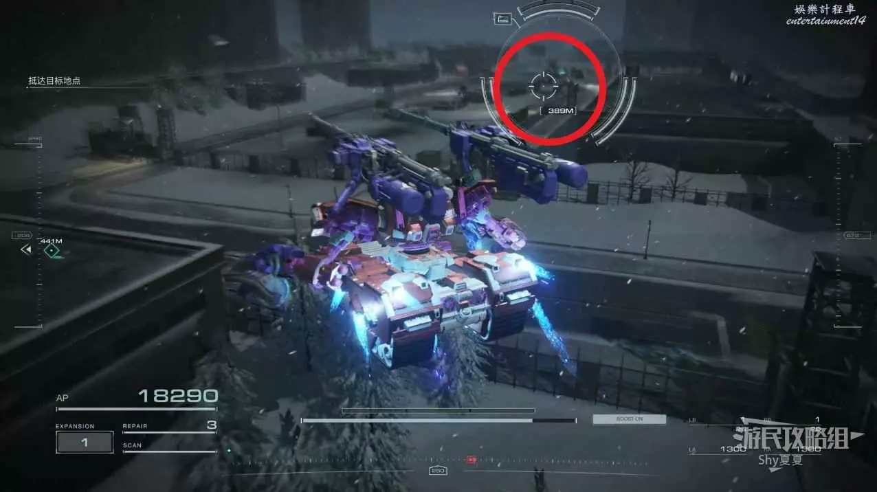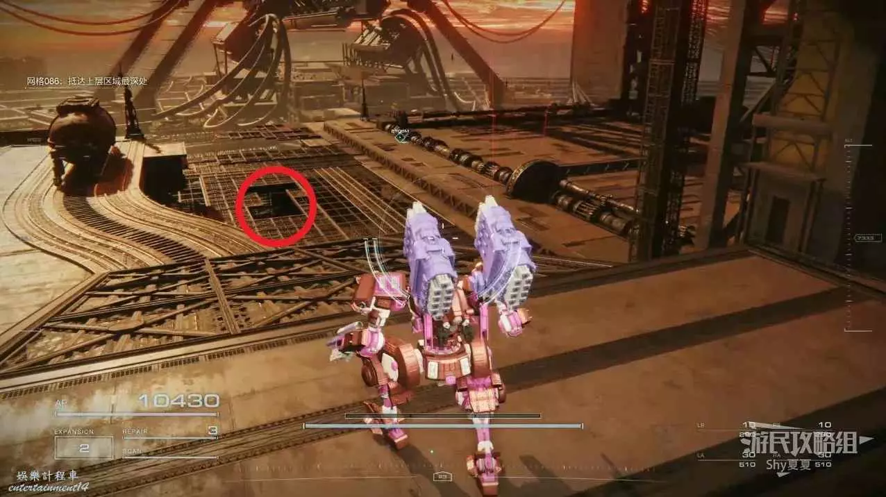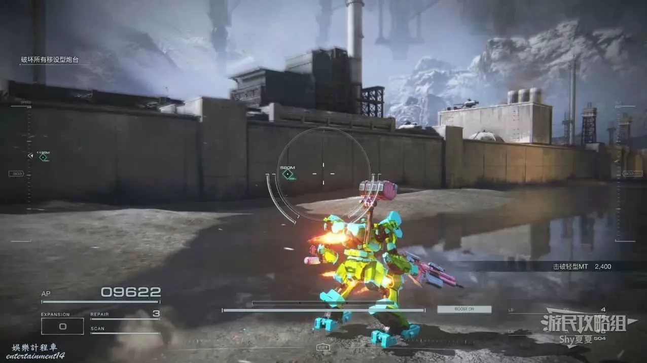本關有持有護盾的敵人,可以近戰武器破防,可繞後攻擊,可用導彈轟炸,但是最好用的還是飛到他的頭頂直接攻擊。