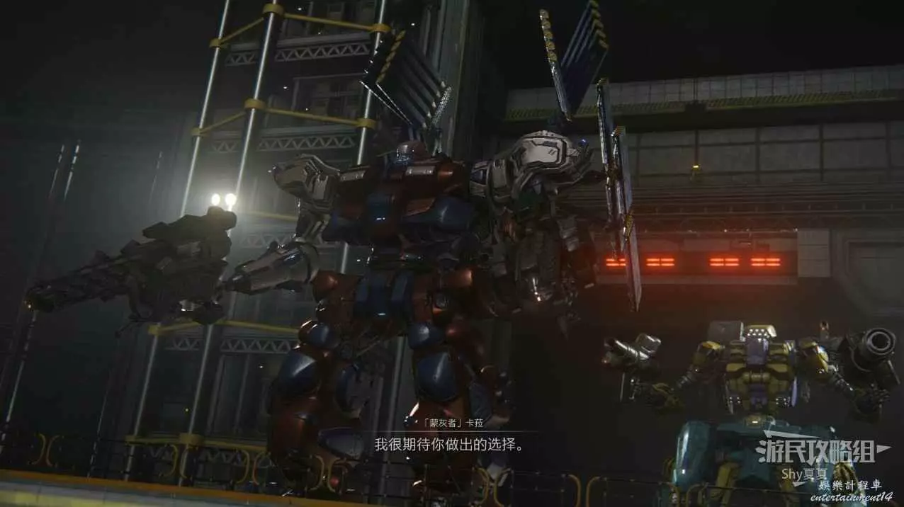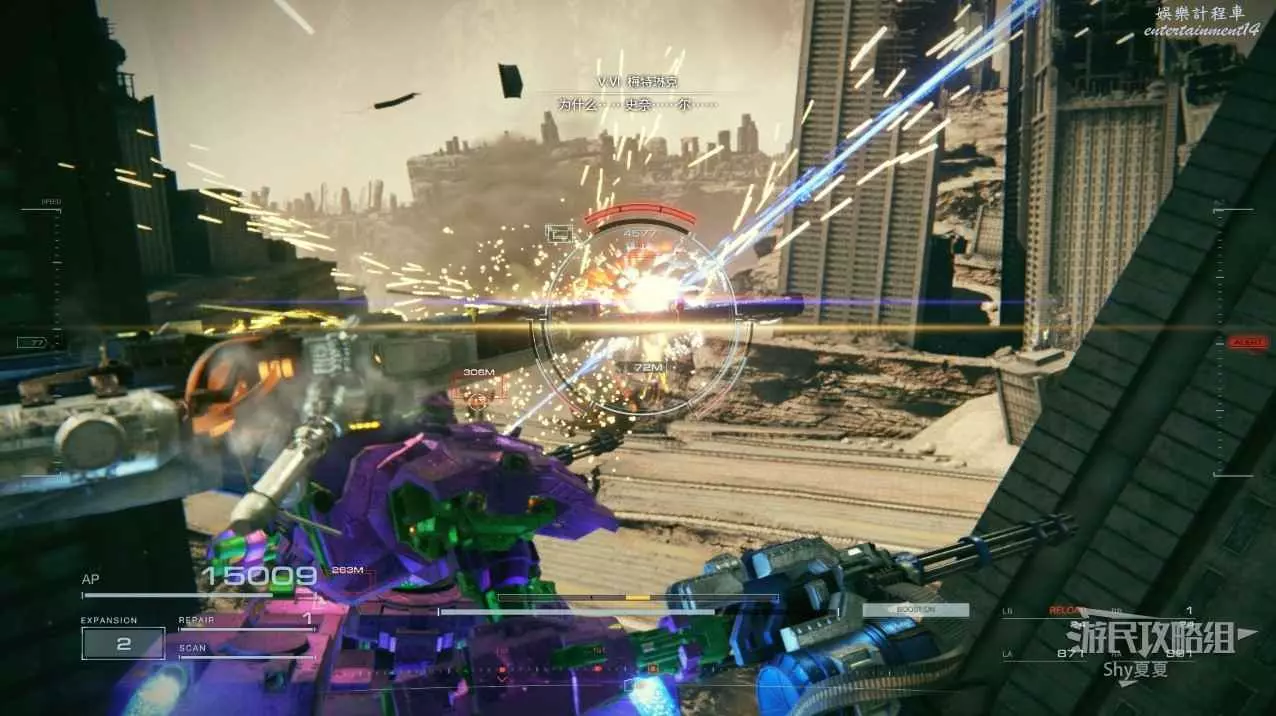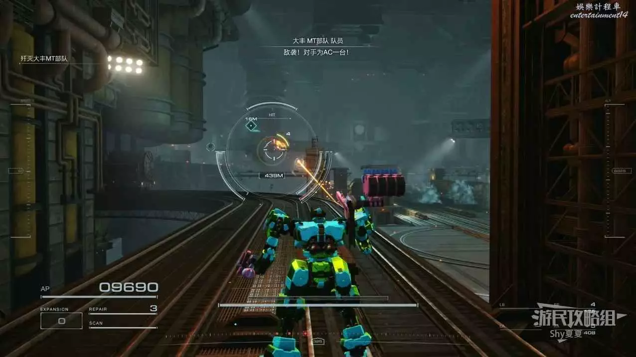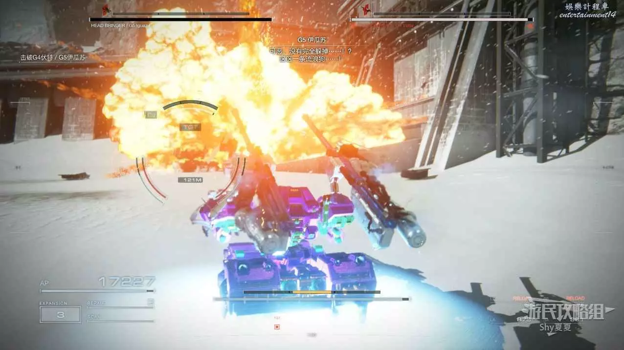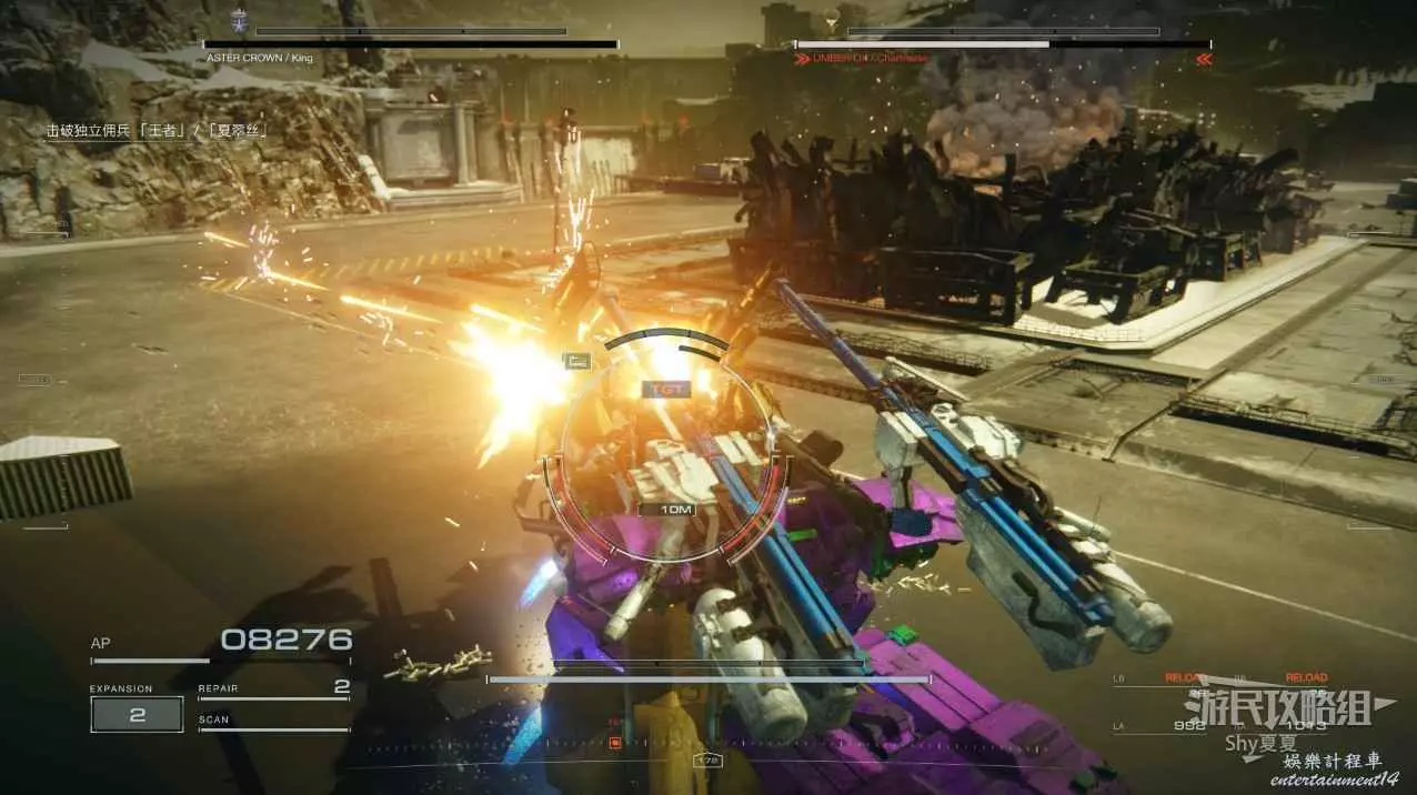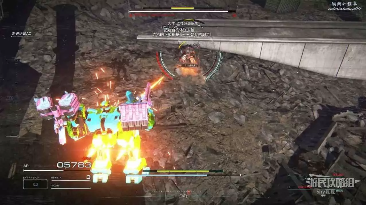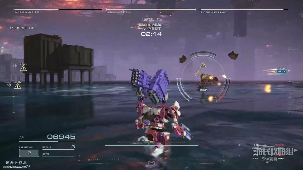 本關有持有護盾的敵人,可以近戰武器破防,可繞後攻擊,可用導彈轟炸,但是最好用的還是飛到他的頭頂直接攻擊。