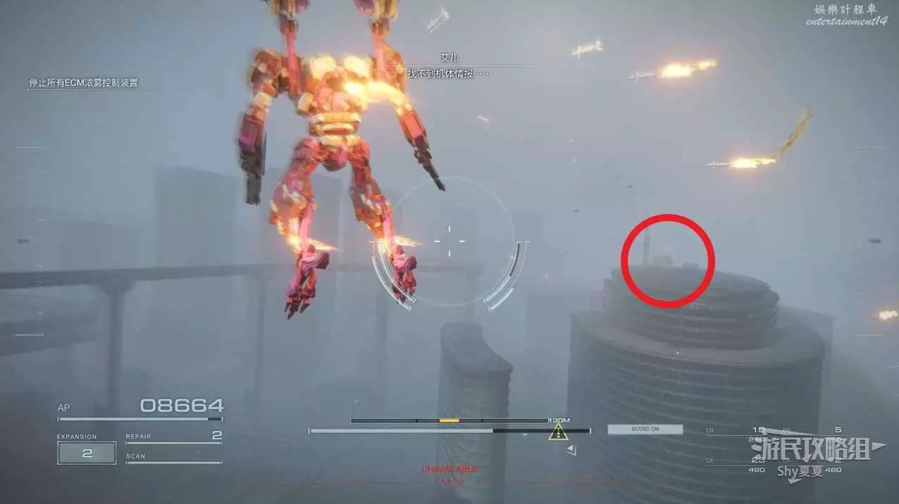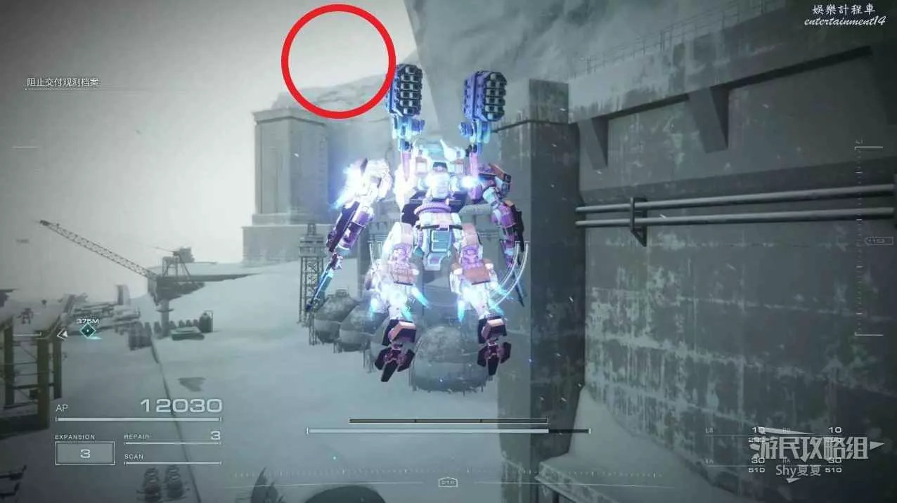 拾取後再補一發導彈干擾彈,就可以爬上另一邊的建築了。