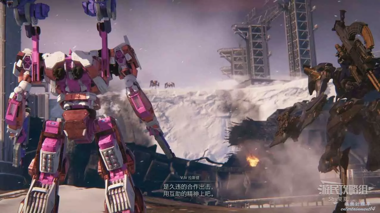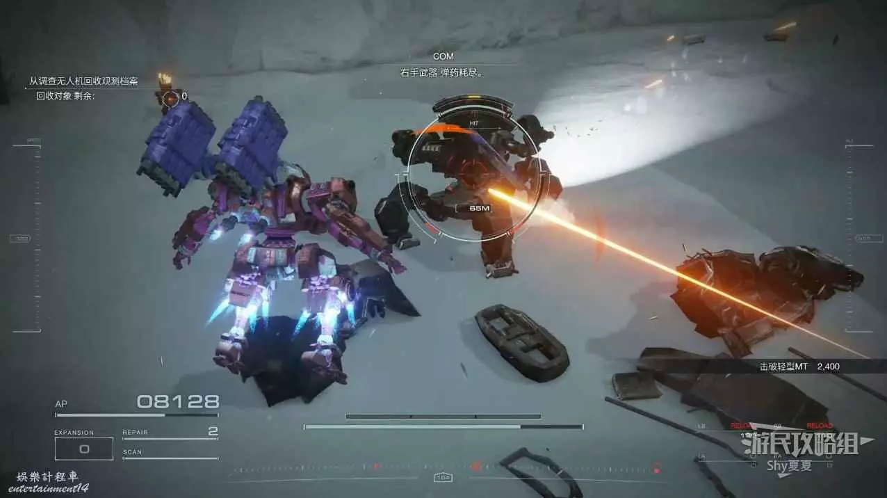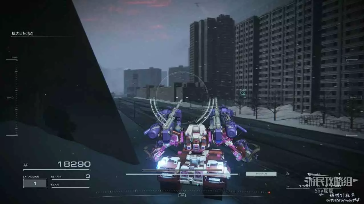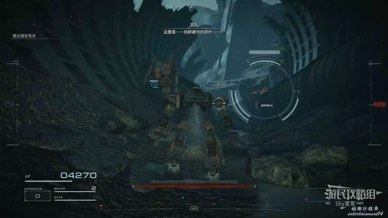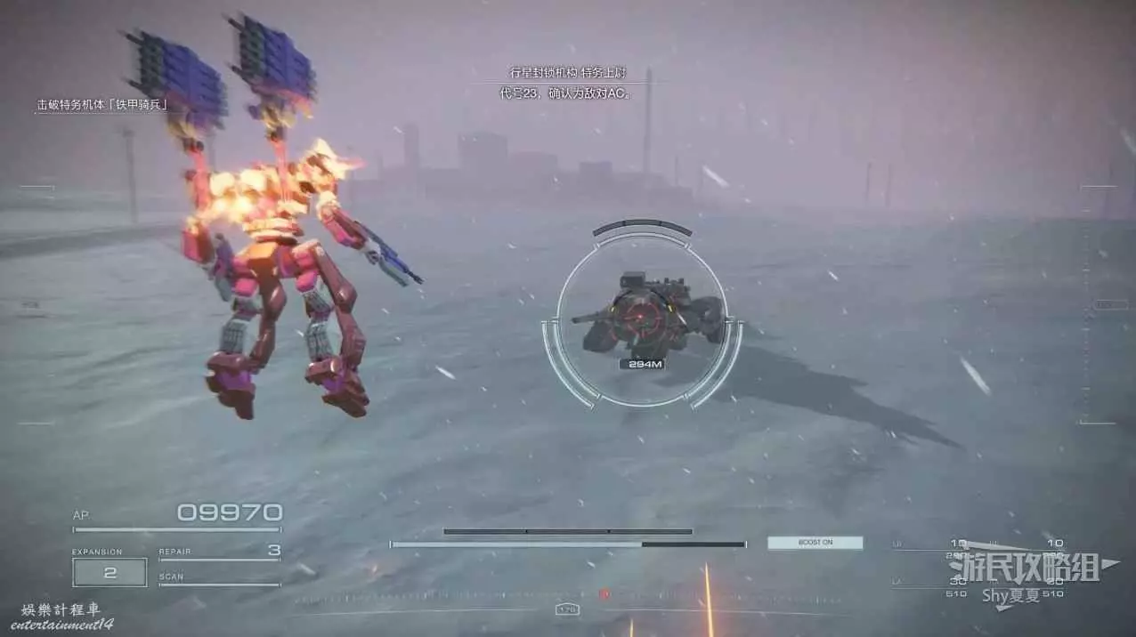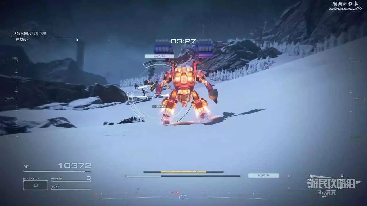 進入遊戲後,直接就要駕駛機甲行動,在這裡跟著提示熟悉一下基本的操作,了解一下專有名詞。一路過關斬將,就會被發射到雪地。