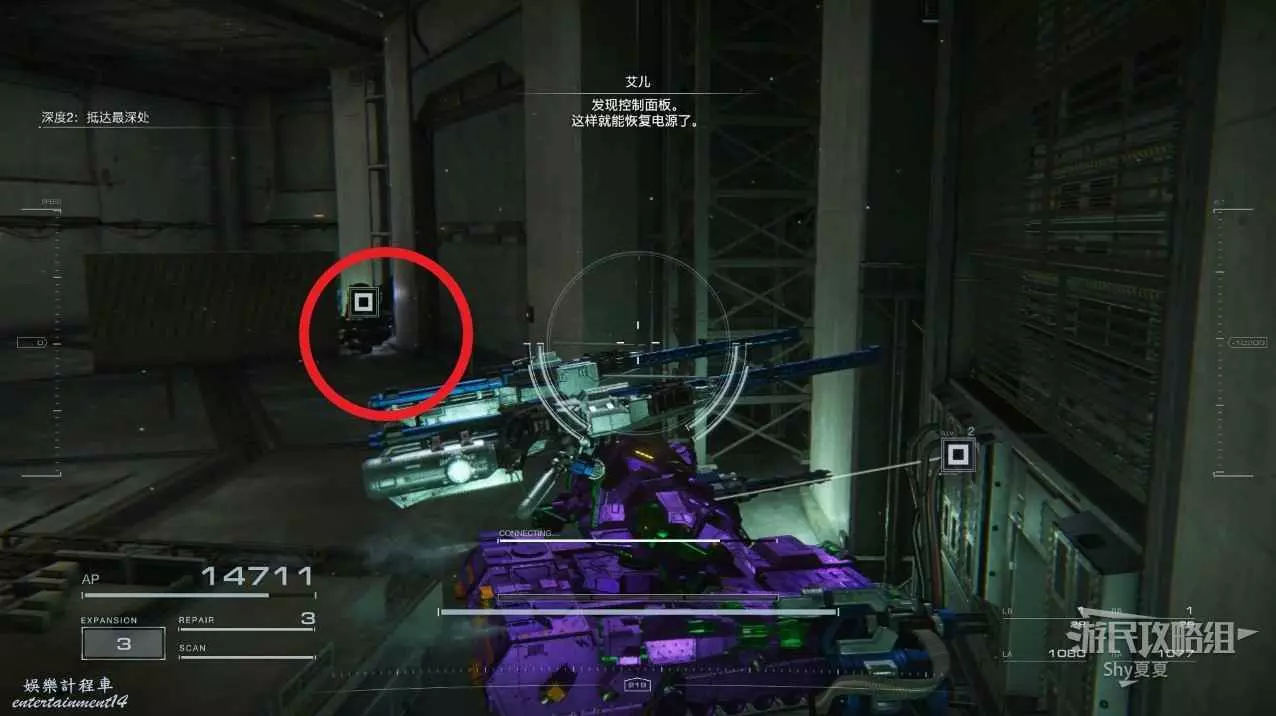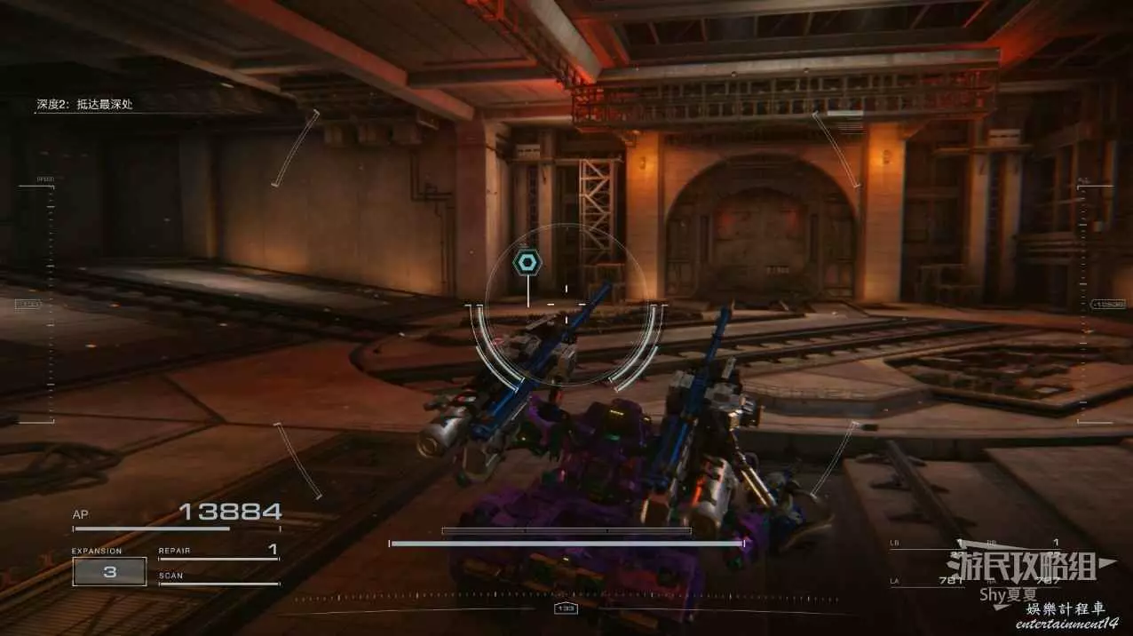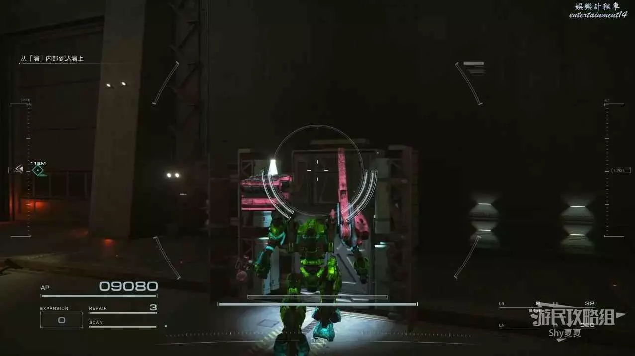 這一關一開始沒有敵人,慢慢往裡走,就會遇到隱身的敵人,這裡建議用掃描對付,也可以根據彈道的方向進行尋找。