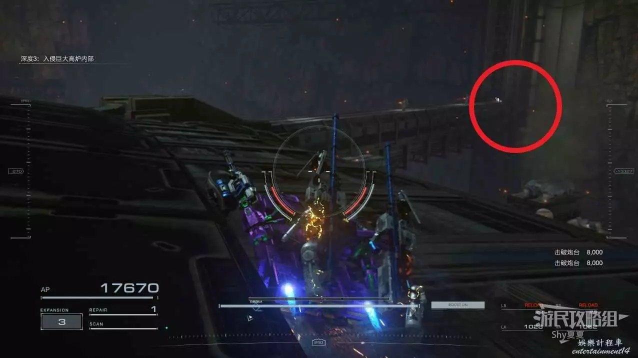 進入內部,消滅雜兵,一直往裡走,會遇到補給點,補給之後就是BOSS戰了。