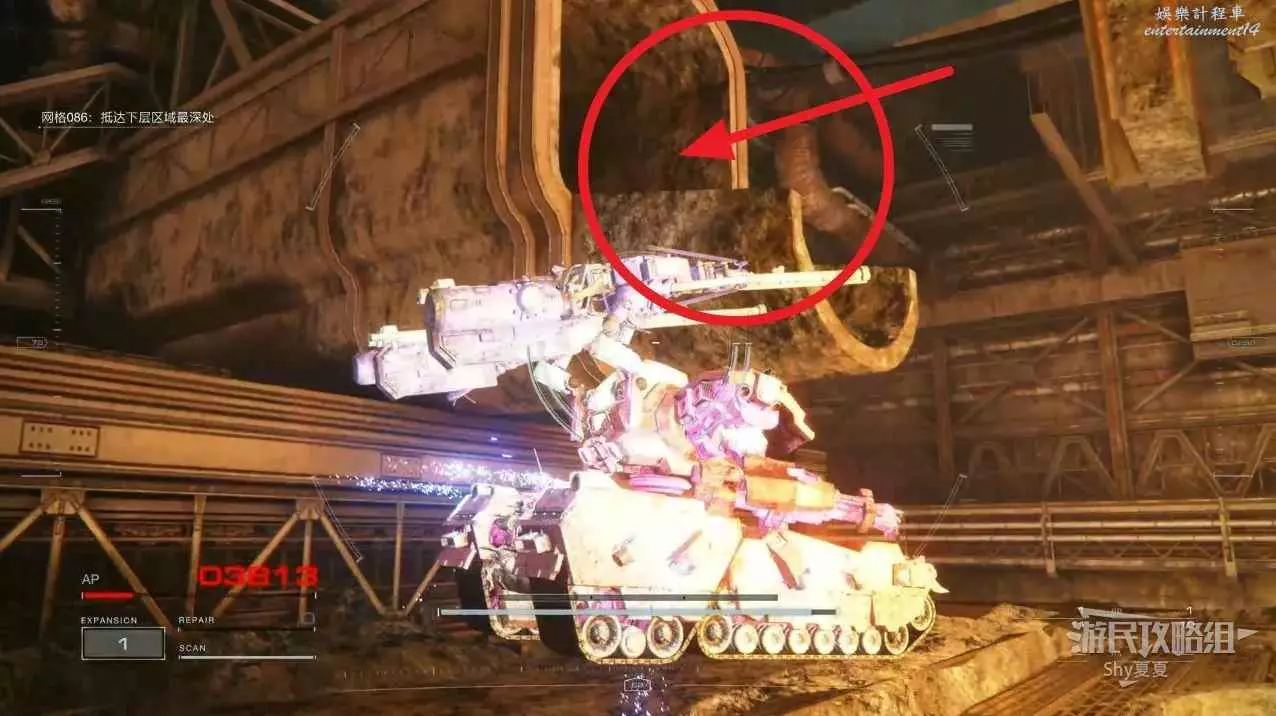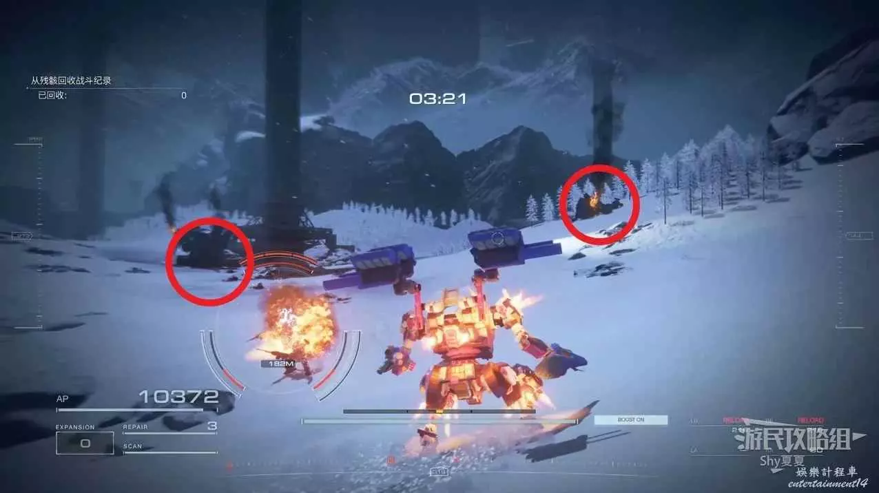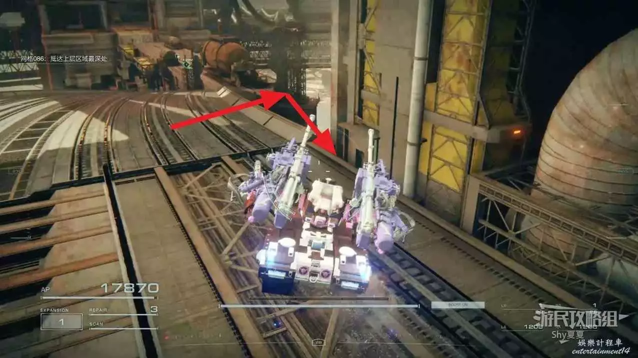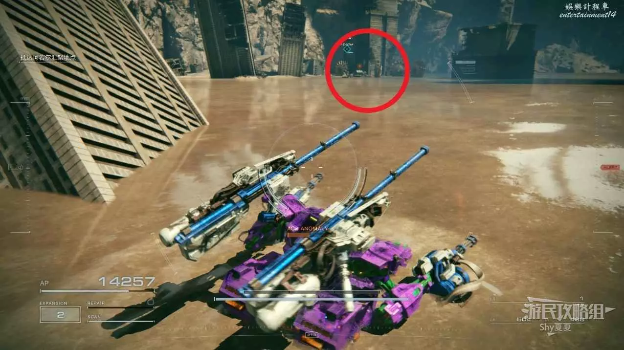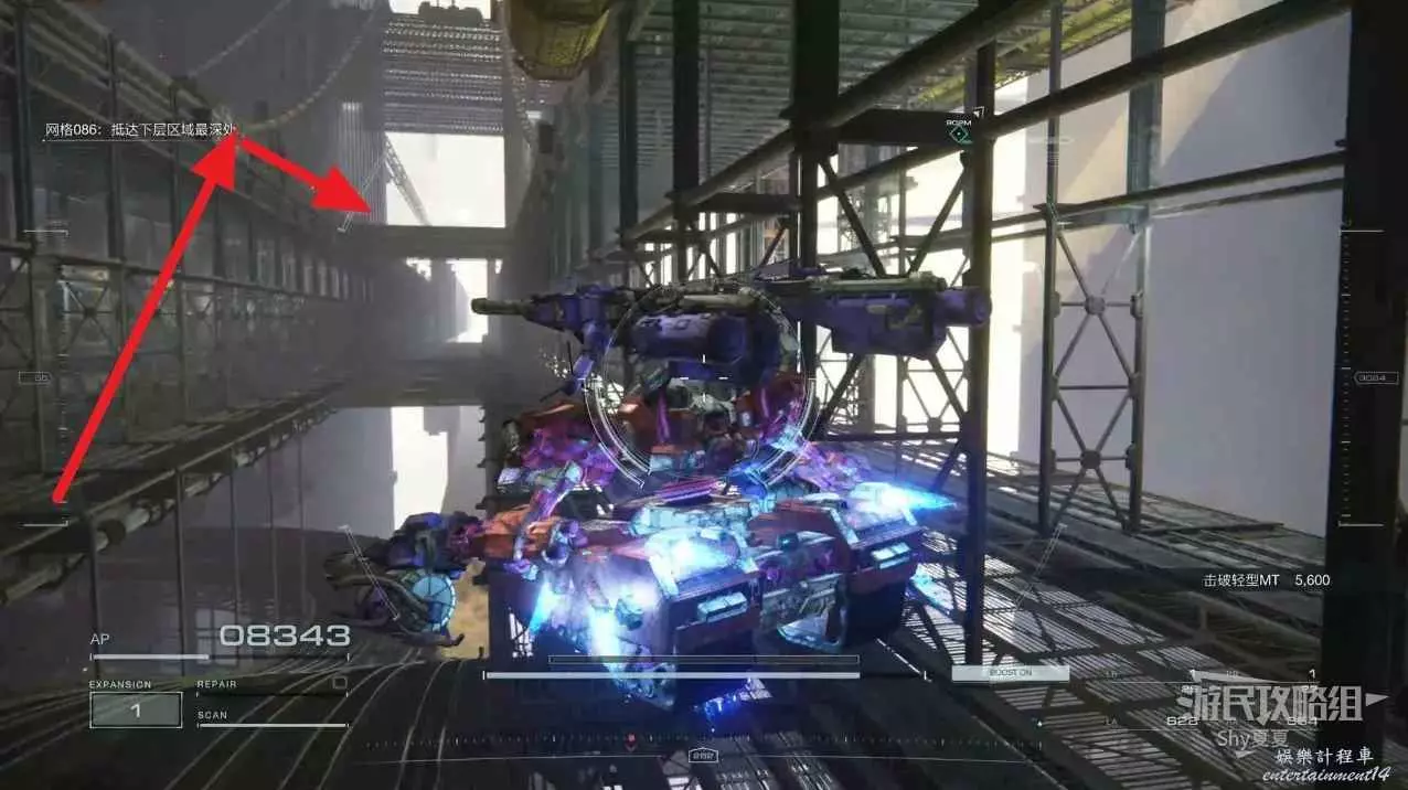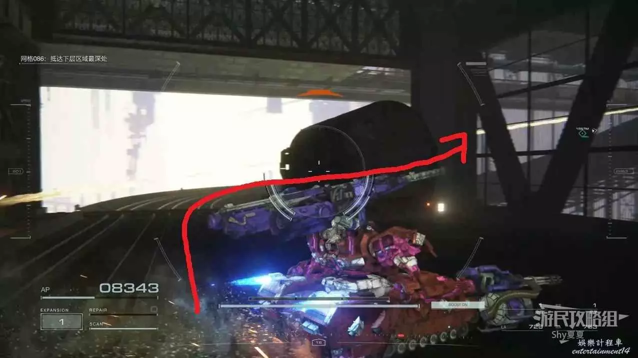 從另一側出來後,記得用導彈干擾扔到使用導彈的敵人身上,然後在他身邊可以拾取【影像記錄:零件性能測驗】。