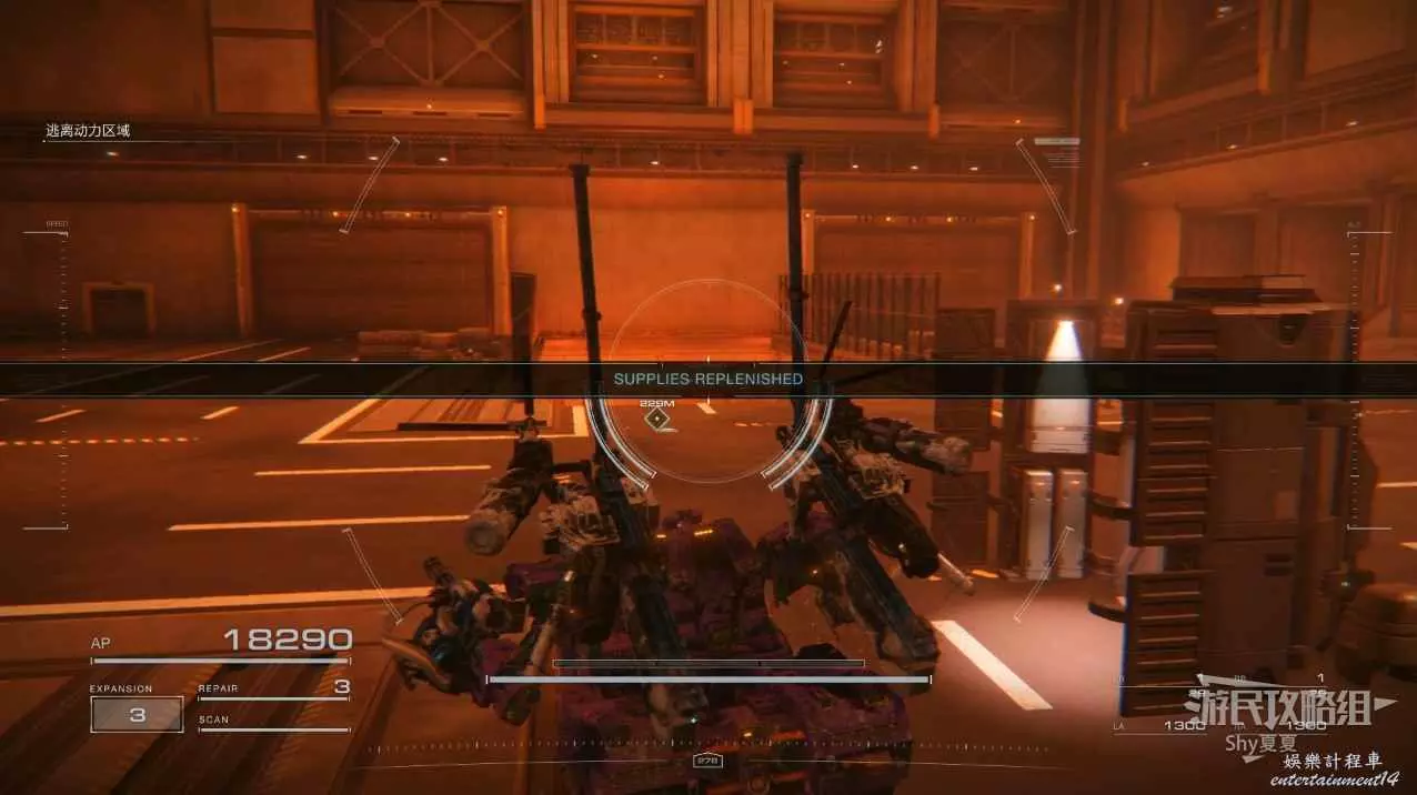 進入建築內有一個強敵,飛行且有護盾,建議近戰輸出,消滅後可以進行補給,補給完畢準備本關最後一戰。