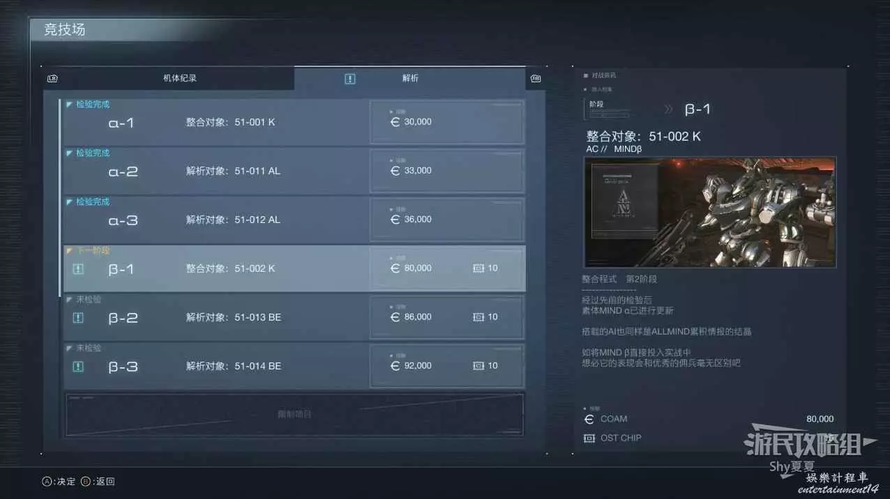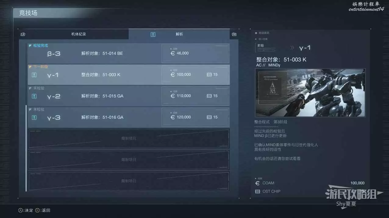 完成後會解鎖競技場新敵人【γ】。此時可以解鎖全部OS調整。