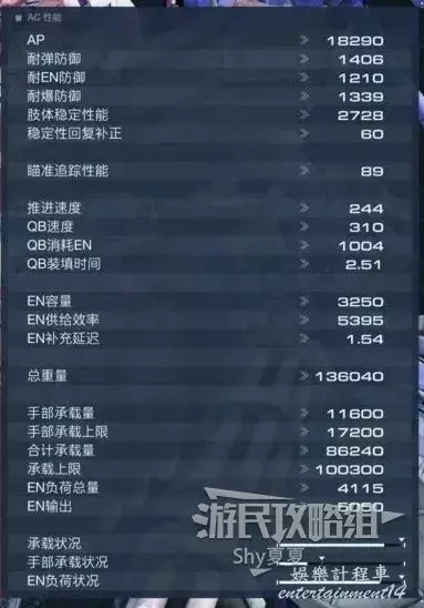 EN負荷總量:如果裝備的零件超過EN負荷總量將無法出擊。