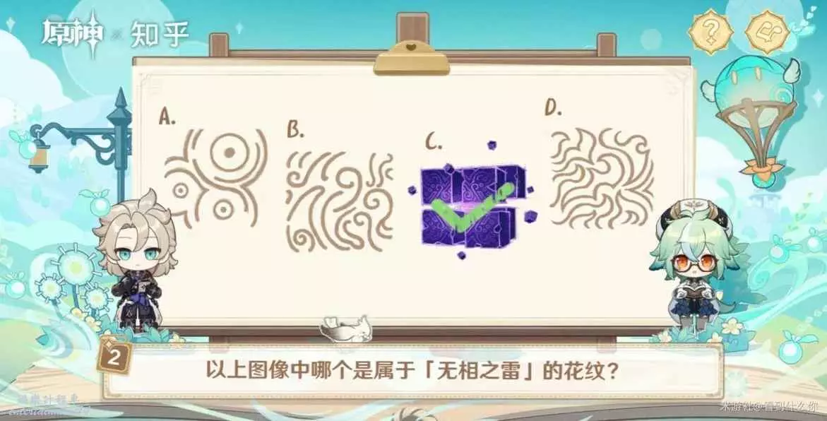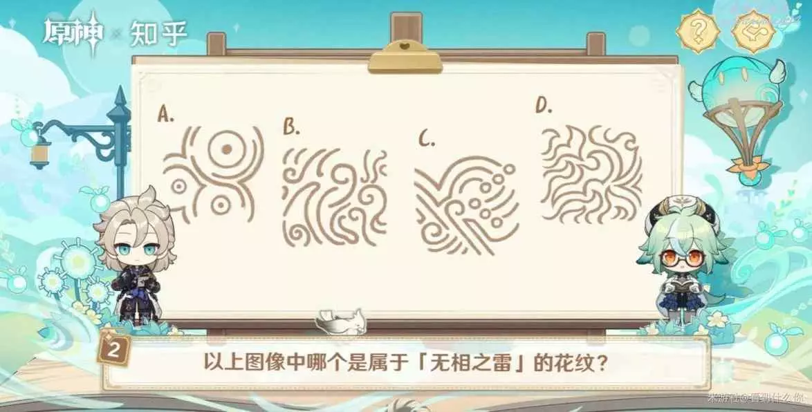 雷的花紋是偏向於“淩厲”的線條感哦,剩下的幾個裡面,A是無相之水(有點像水滴在湖面上的漣漪),B是無相之風(風的線條嘛),D是無相之火(火焰紋)