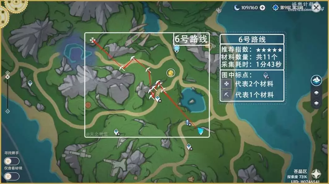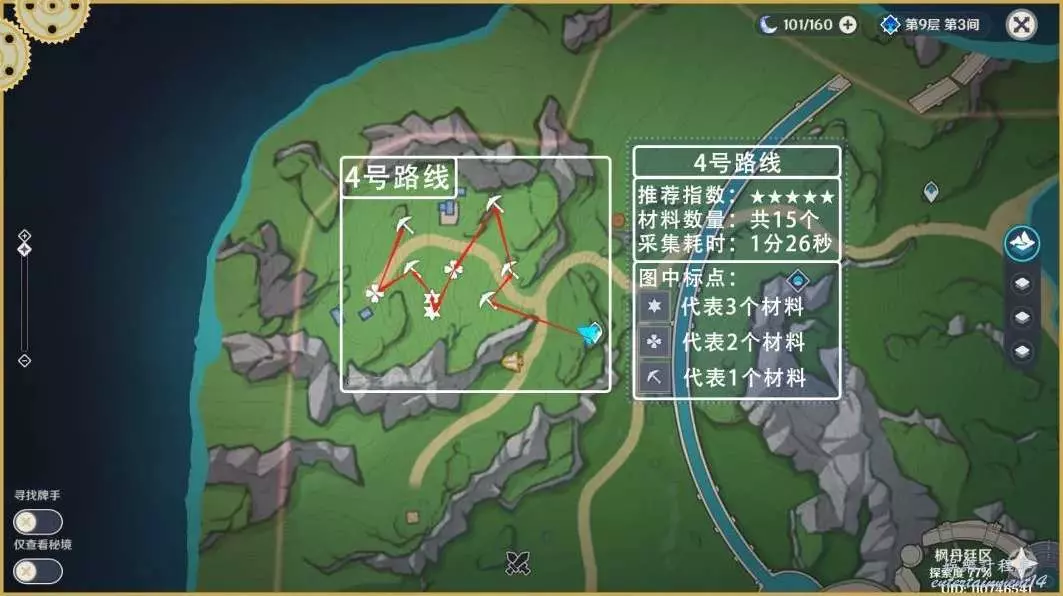 1、跑圖收集材料時建議帶上雙風,吃個藥。有夜蘭帶夜蘭,有散兵帶散兵,有綾華帶綾華。(早柚,莫娜,綺良良等跑圖角色都可以帶,可以節省很多跑圖時間)