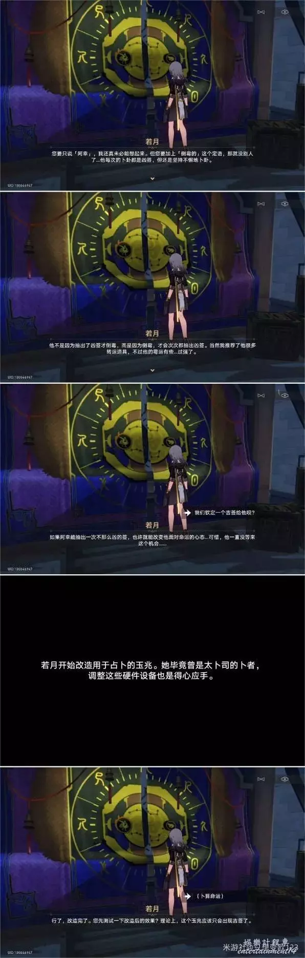 但是等到阿幸抽的時候,占卜玉兆停了,不吐簽,像是壞掉了(這裡可以看出來阿幸事真的倒楣了)