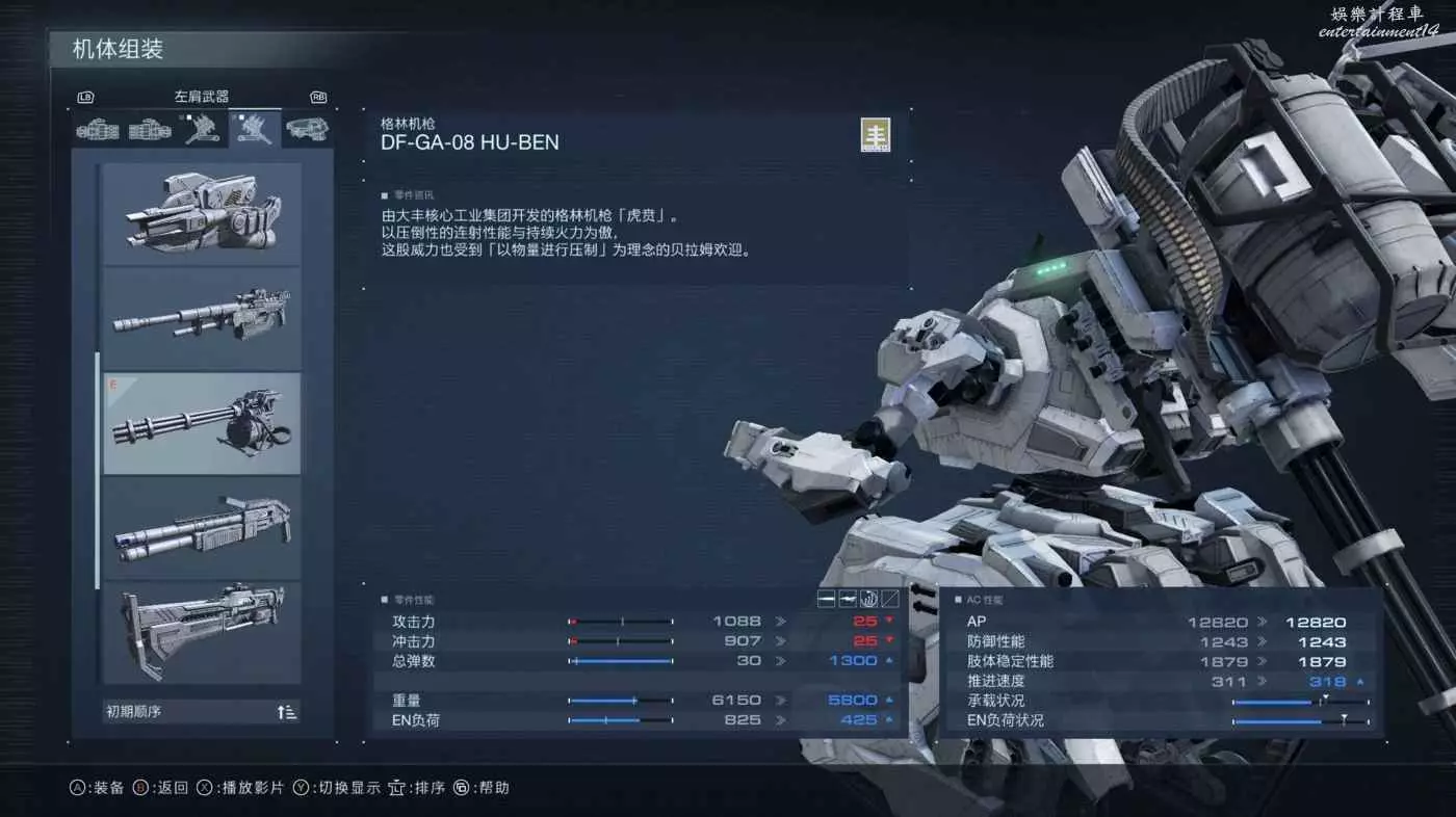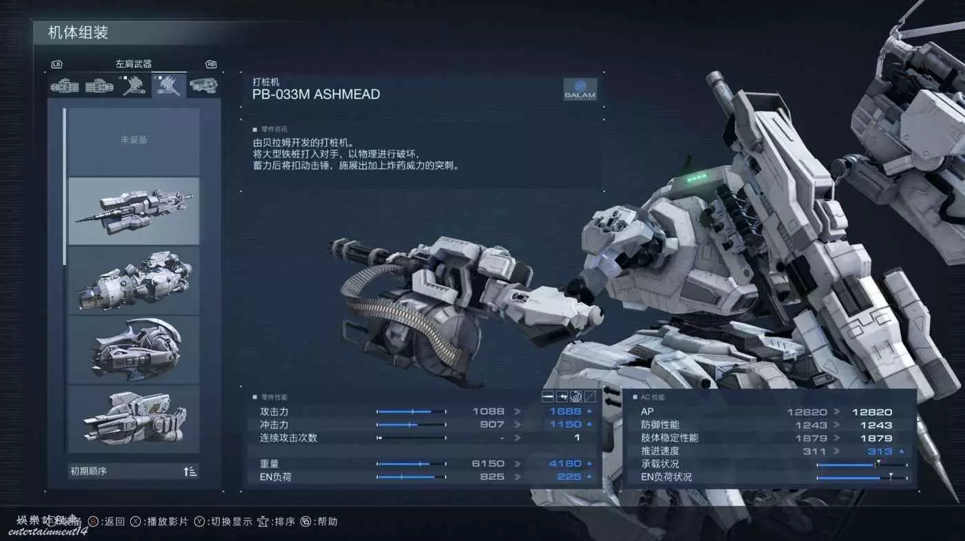 其他部件手部核心頭部發動機之類的我還沒研究透,就不作推薦了,大概只要裝上這些關鍵部位後EN不超載重量不超重就行了,想要更細化配置可以自己看boss的傷害類型和移動方式之類的自行發揮。