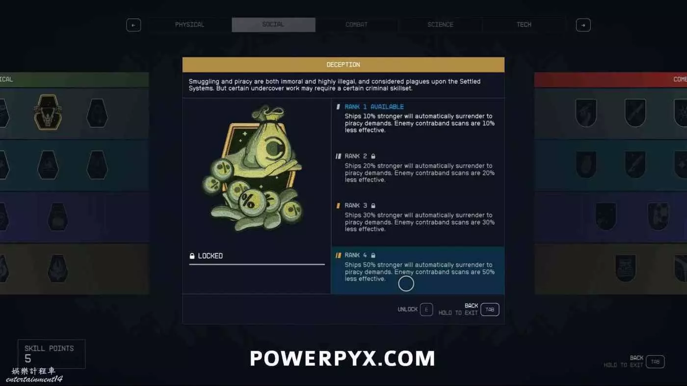 購買並升級社交技能【欺瞞(Deception)】,等級4時即可將運送藏貨時不被發現的幾率提升至50%。最高品質的掃描干擾器也有50%的幾率避免被發現,再加上隱蔽儲物櫃,基本上不被發現的幾率會有100%。