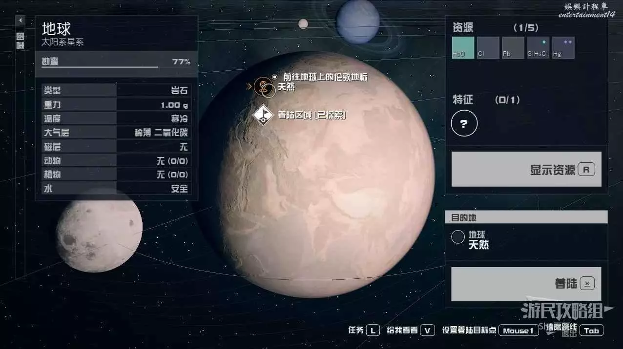 星空 (Starfield) 前往地球方法 1 9 月 2023-09-01 廣告 作者:Shy夏夏 來源:遊民星空 解鎖飛船後,我們要打開星圖,一直縮到最小,就能看到太陽系。 進入太陽系後,從內往外的第三個星球就是地球了,點擊地球設定航線。接下來直接進行躍遷即可。 來到地球,選擇著陸點進行著陸。 著陸之後就可以探索地球了,這裡的地球已經沒有什麼東西了,就是一片荒漠,還有太陽輻射,沒有任何生機。
