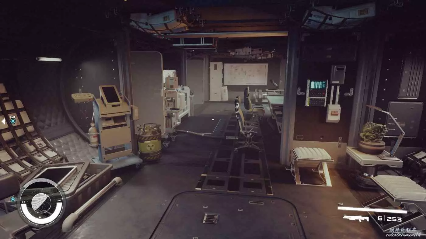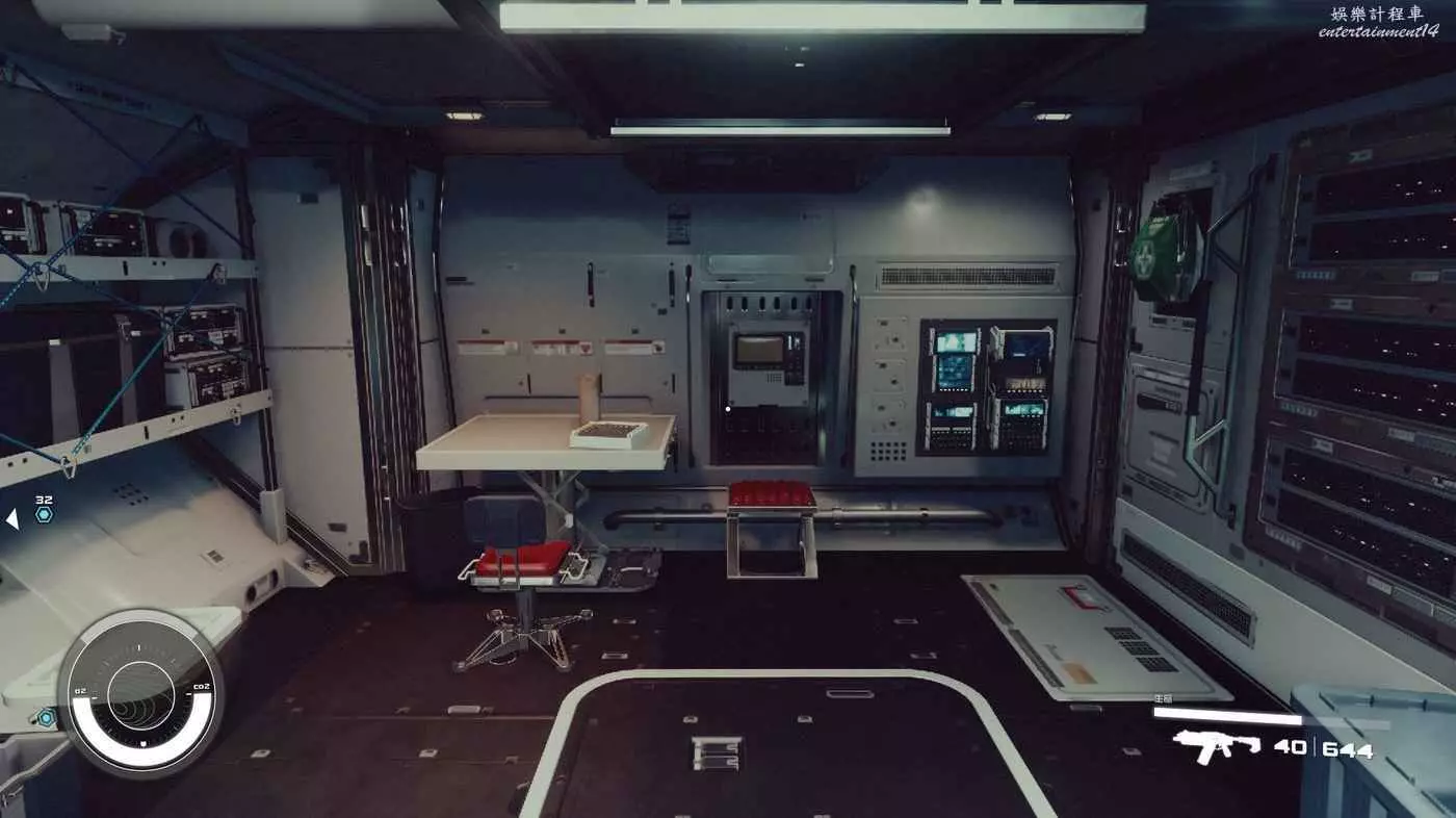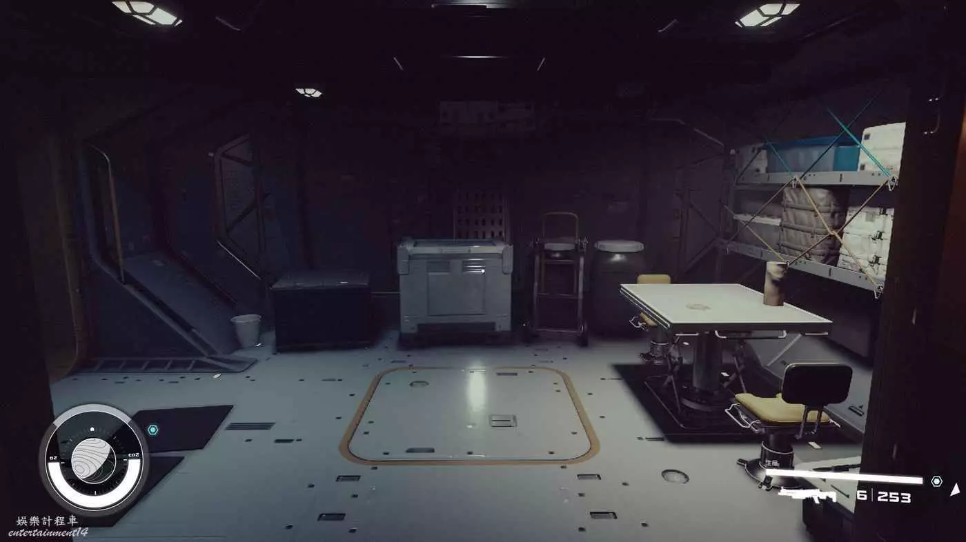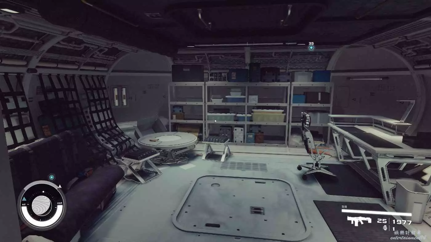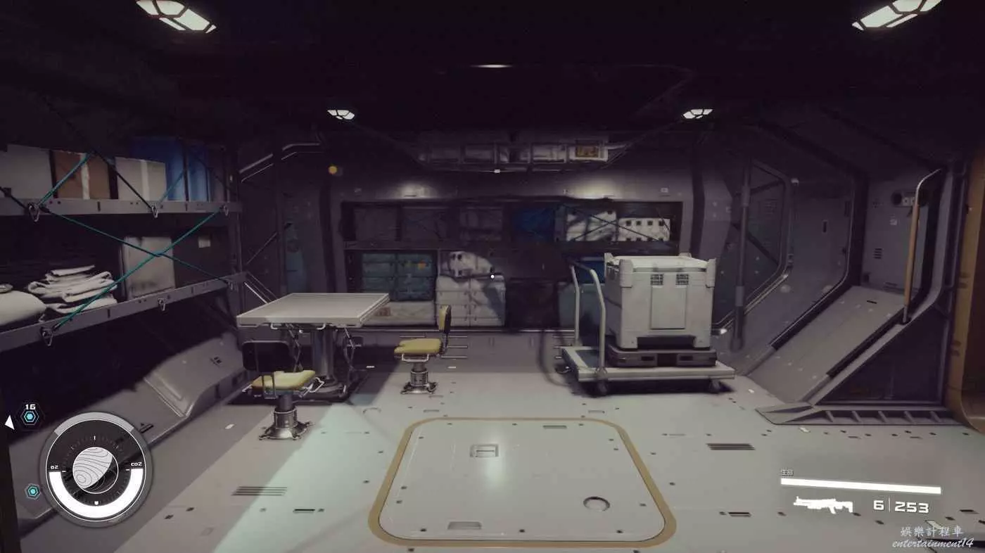 有一些盒子櫃子,然後就是醫務工作台和科研台。玩家並不能用床。