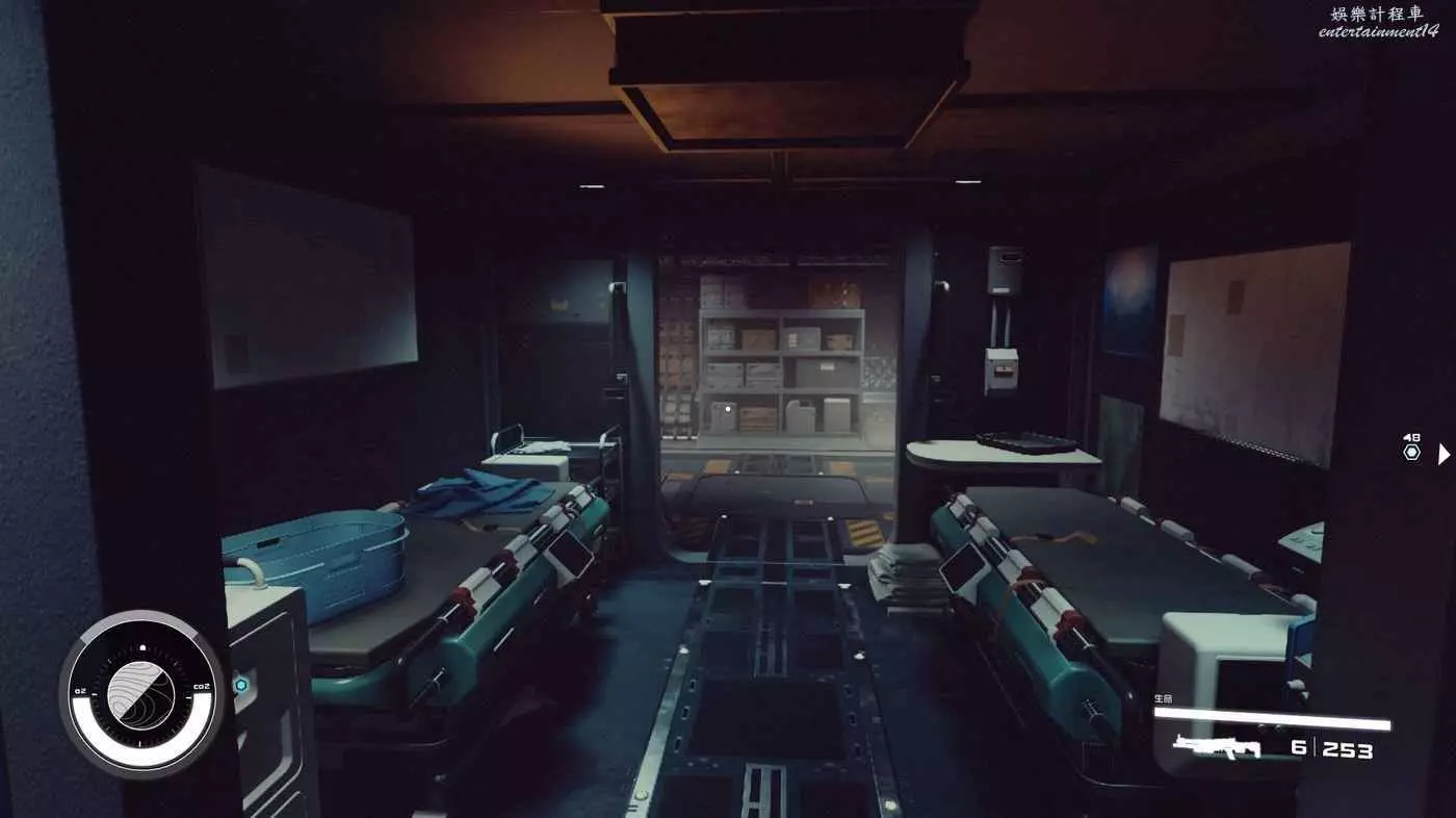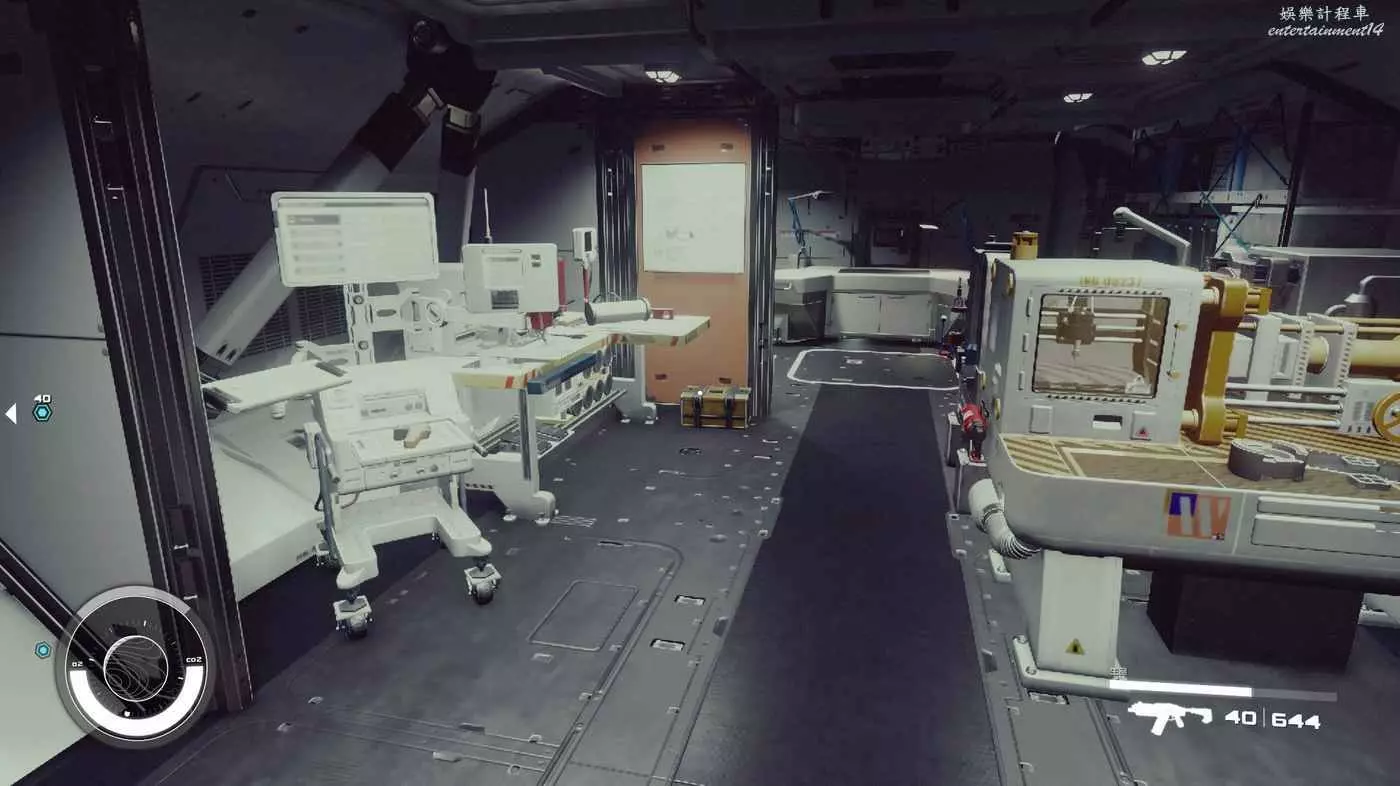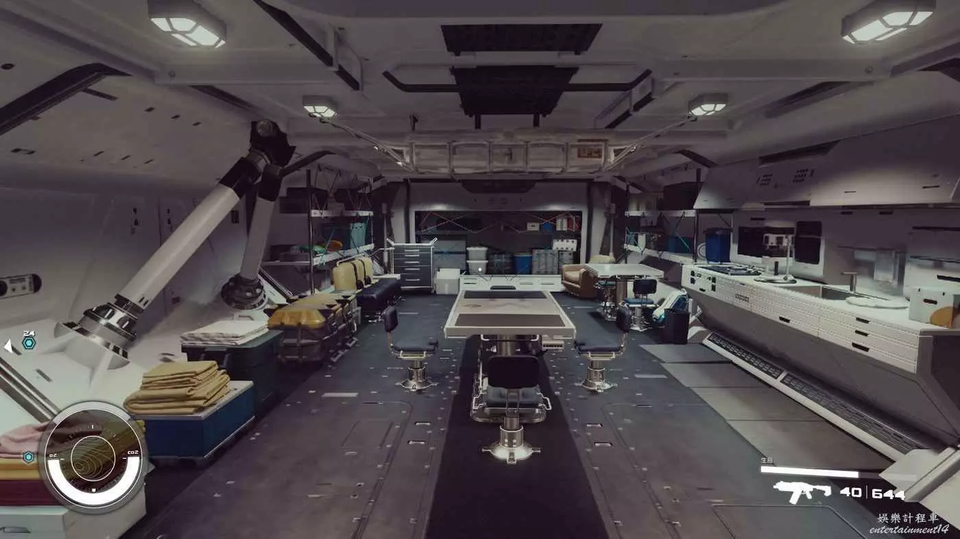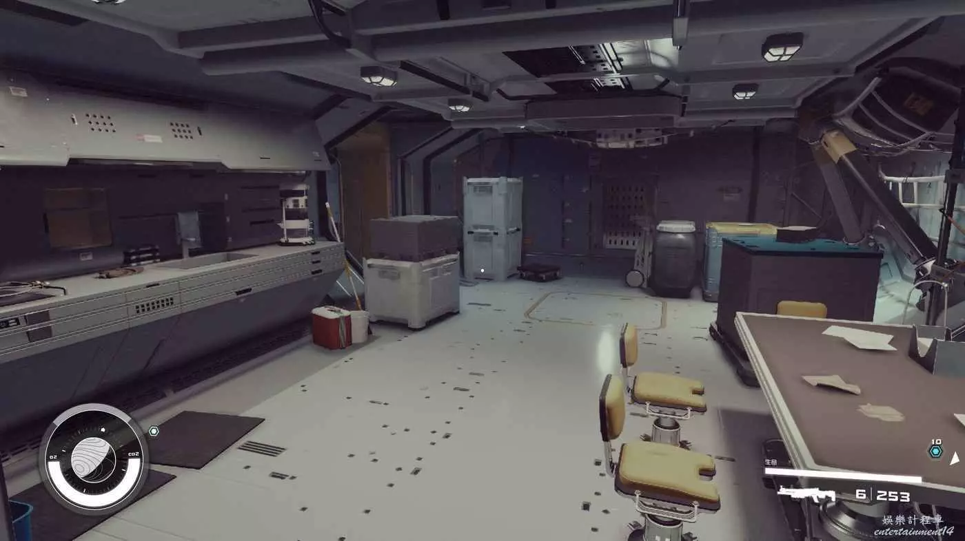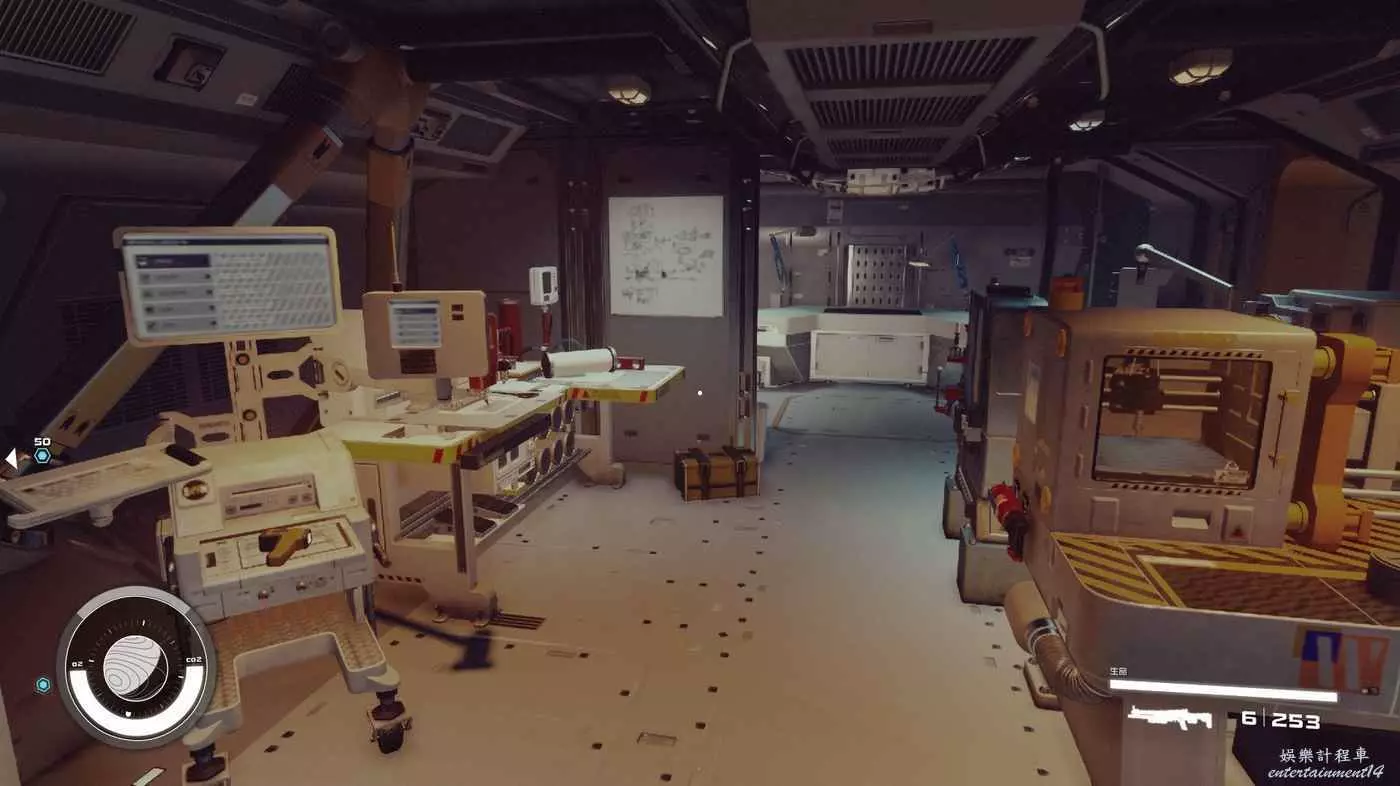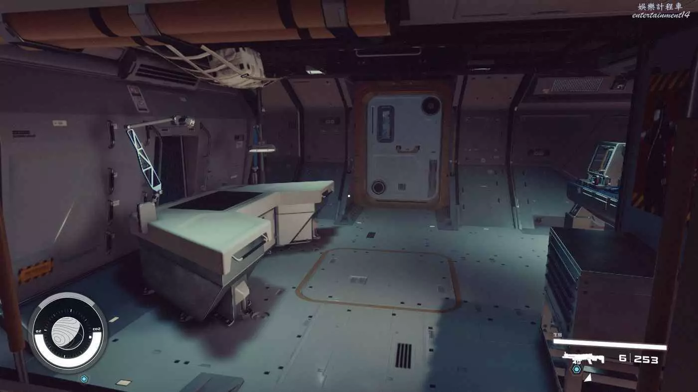 有一些盒子櫃子,然後就是醫務工作台和科研台。玩家並不能用床。