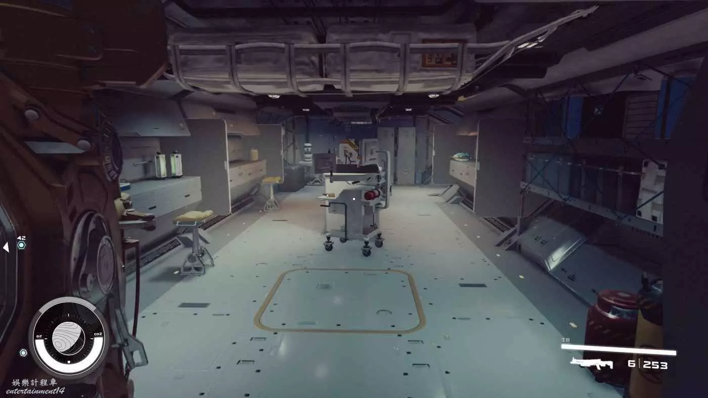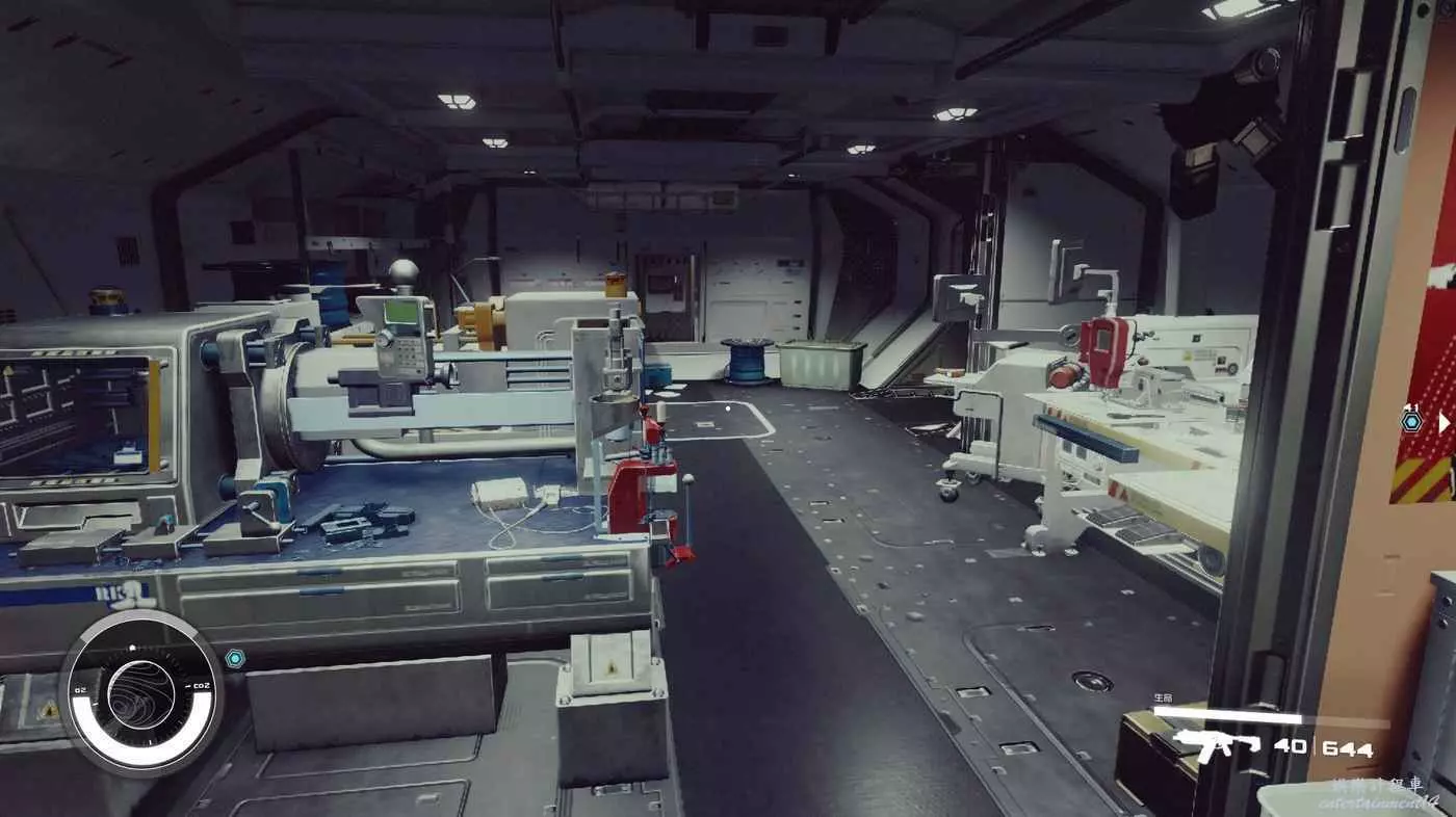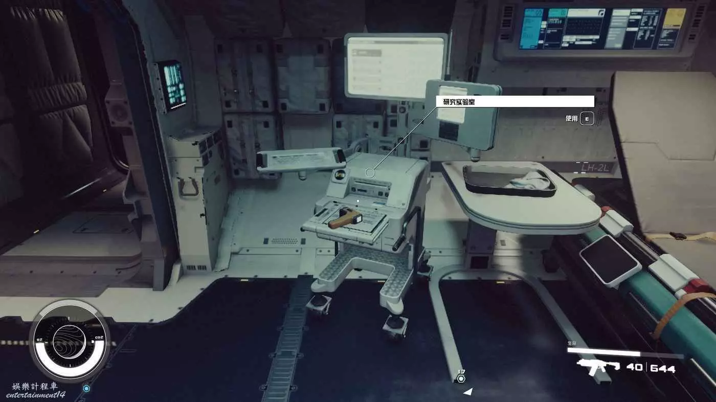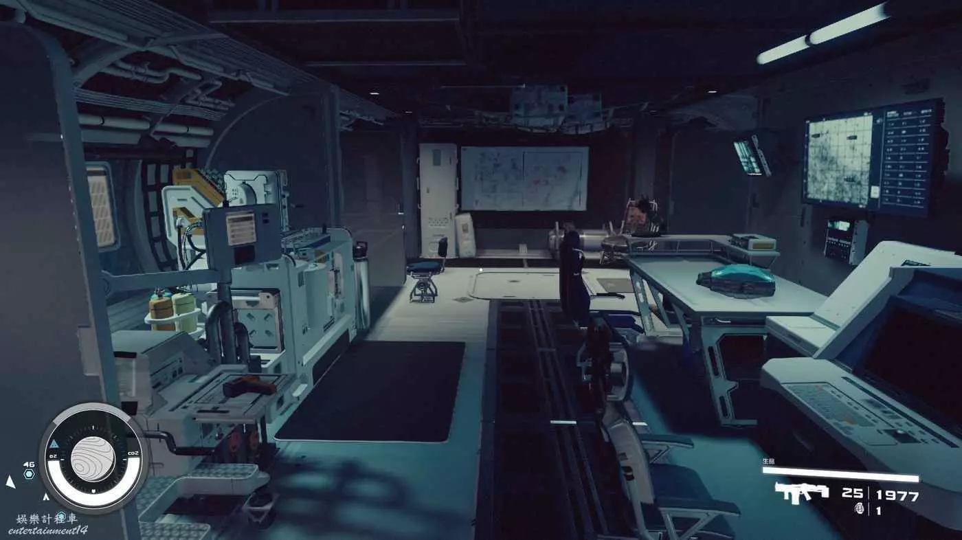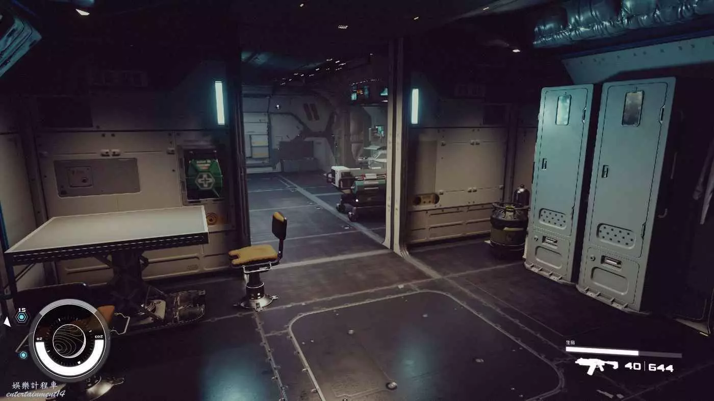 有一些盒子櫃子,然後就是醫務工作台和科研台。玩家並不能用床。